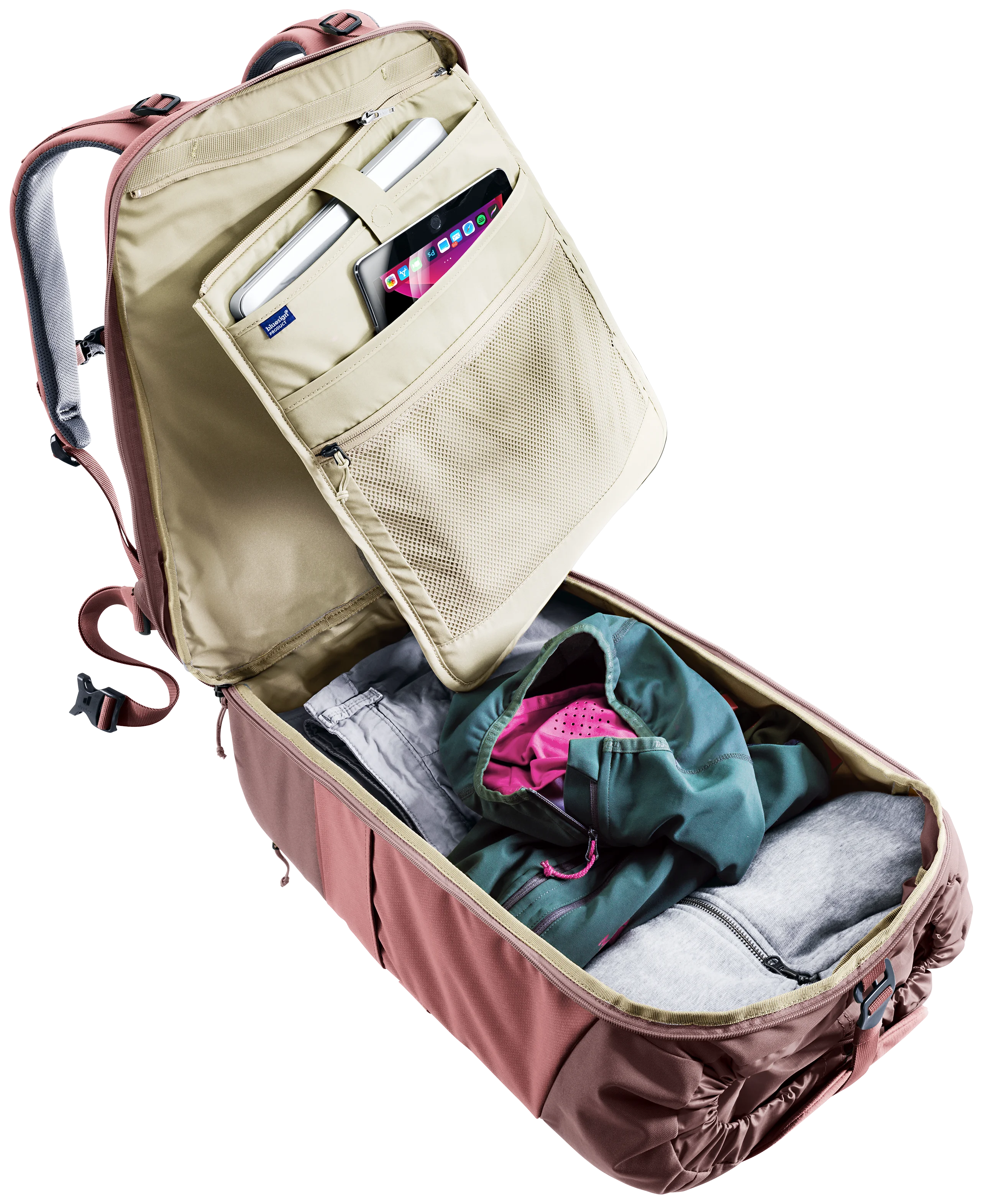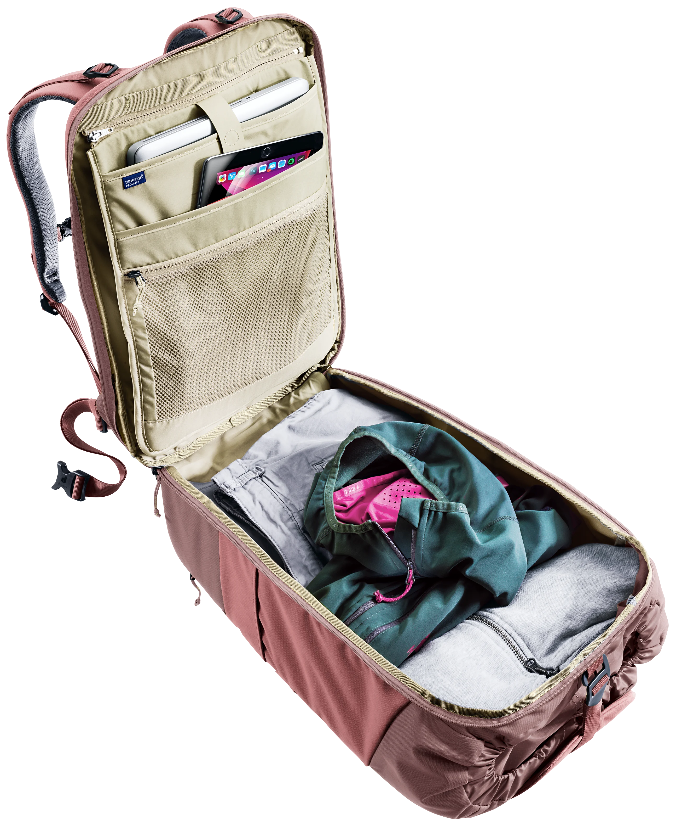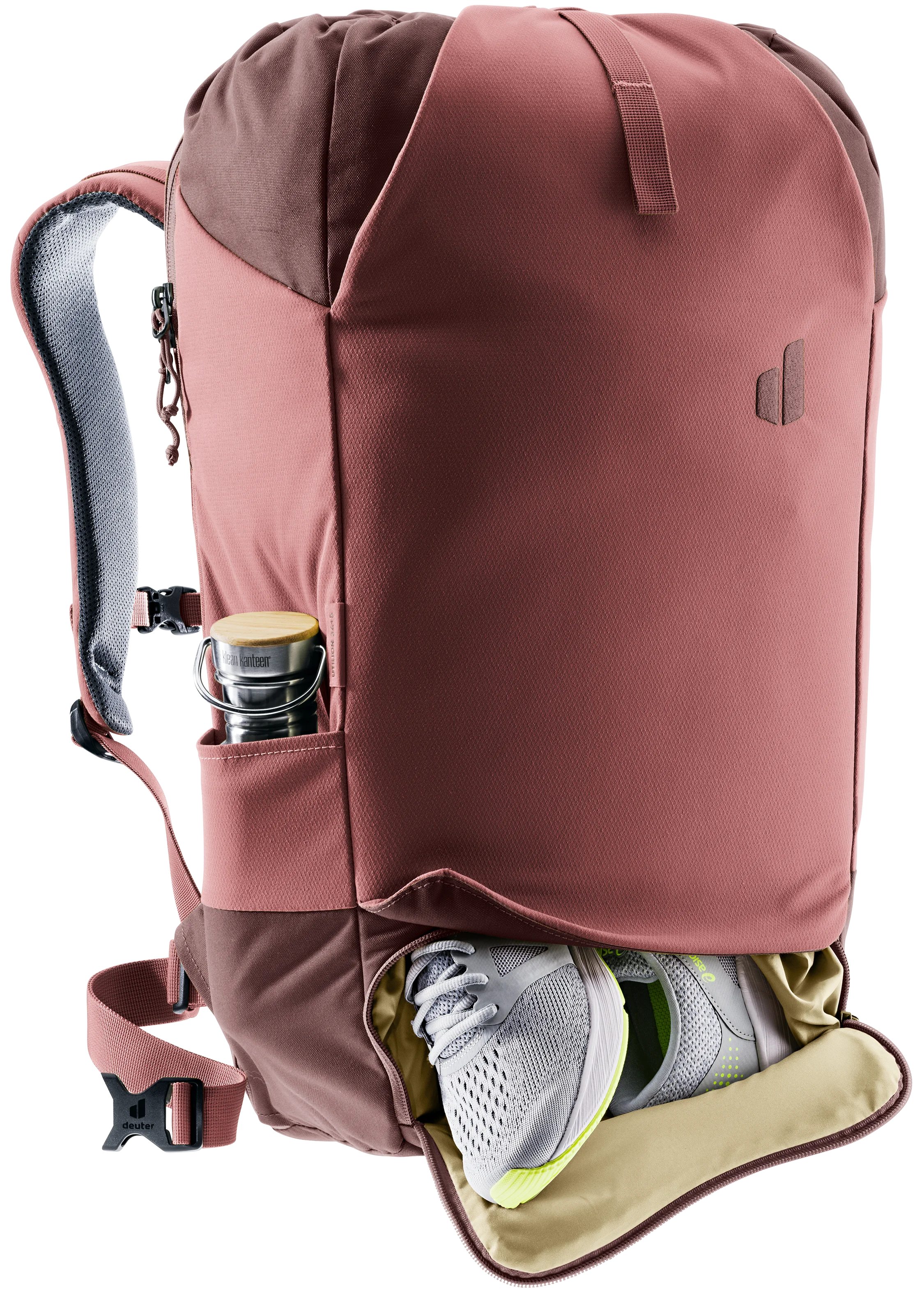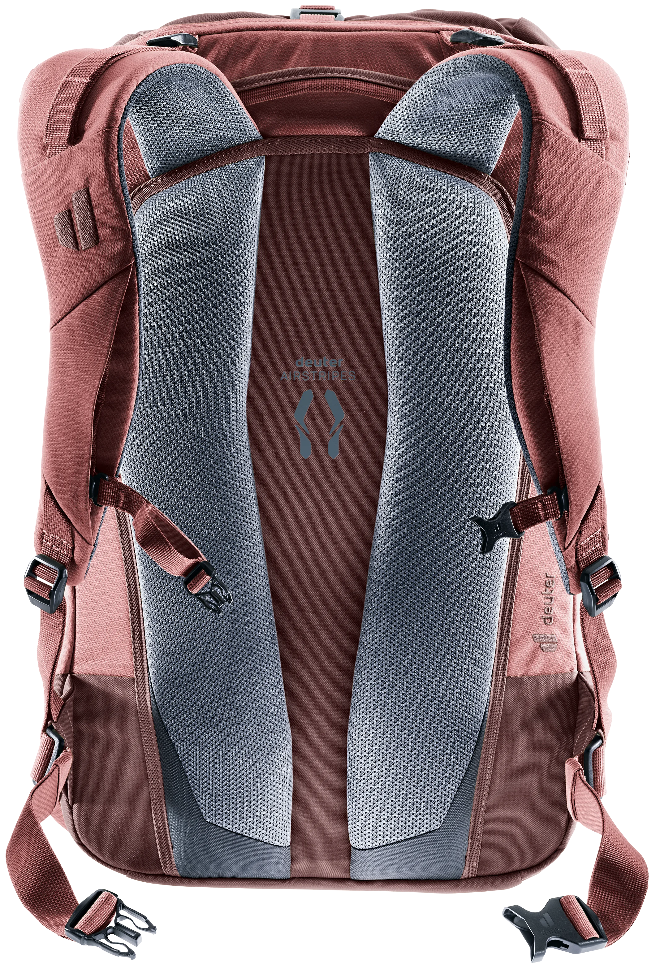 Utilion 34+5 is uitgerust met ergonomische gewatteerde schouderbanden en een verstelbare heupgordel, en dankzij het verkleinde contactoppervlak van het deuter Airstripes rugsysteem zorgt het voor maximale ventilatie en optimaal draagcomfort. Het hoofdvak heeft een trekkoord voor snelle toegang en een uitbreidbare capaciteit door middel van een rits. Binnenin is er een documentenvak en een laptopsleeve voor meer georganiseerde opslag. De PFAS-vrije stof van dit Green Button en bluesign® gecertificeerde product is gemaakt van 100% gerecyclede PET-flessen (24 x 0,5 liter flessen).