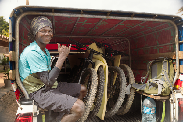 Das Biken hier ist hart. Lange, staubige Anstiege bei hohen Temperaturen machen Shuttle-Support unerlässlich. Doch Cabo Verde-Shuttles sind anders: Reggae-Musik dröhnt aus den Boxen, während wir unsere Bikes auf einen Pickup laden. Auf der Holzbank oder dem Trittbrett findet jeder Platz.