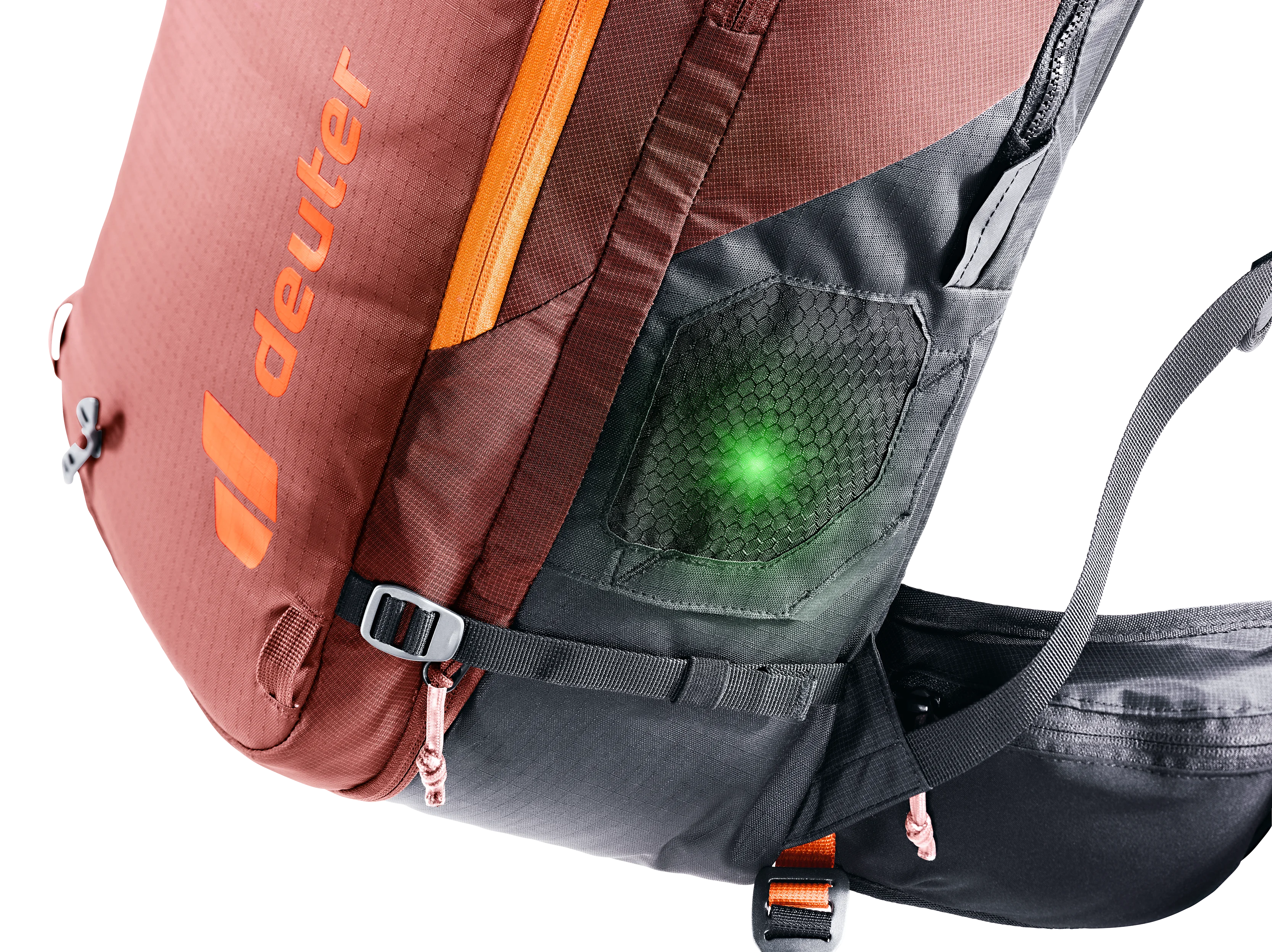 The updated, fully electronic Alpride E2 avalanche airbag system, which features the latest supercapacitor technology, is one of the lightest electronic systems on the market and unaffected by low temperatures. In addition to fast, high-pressure deployment, this proven technology has huge advantages when it comes to maintenance and transport compared to traditional cartridge-powered airbags. An LED status display and trigger action on the outside of the bag makes it easy to assess the system and activate it. Operation is extremely intuitive and is easy to learn during pre-season practice sessions.