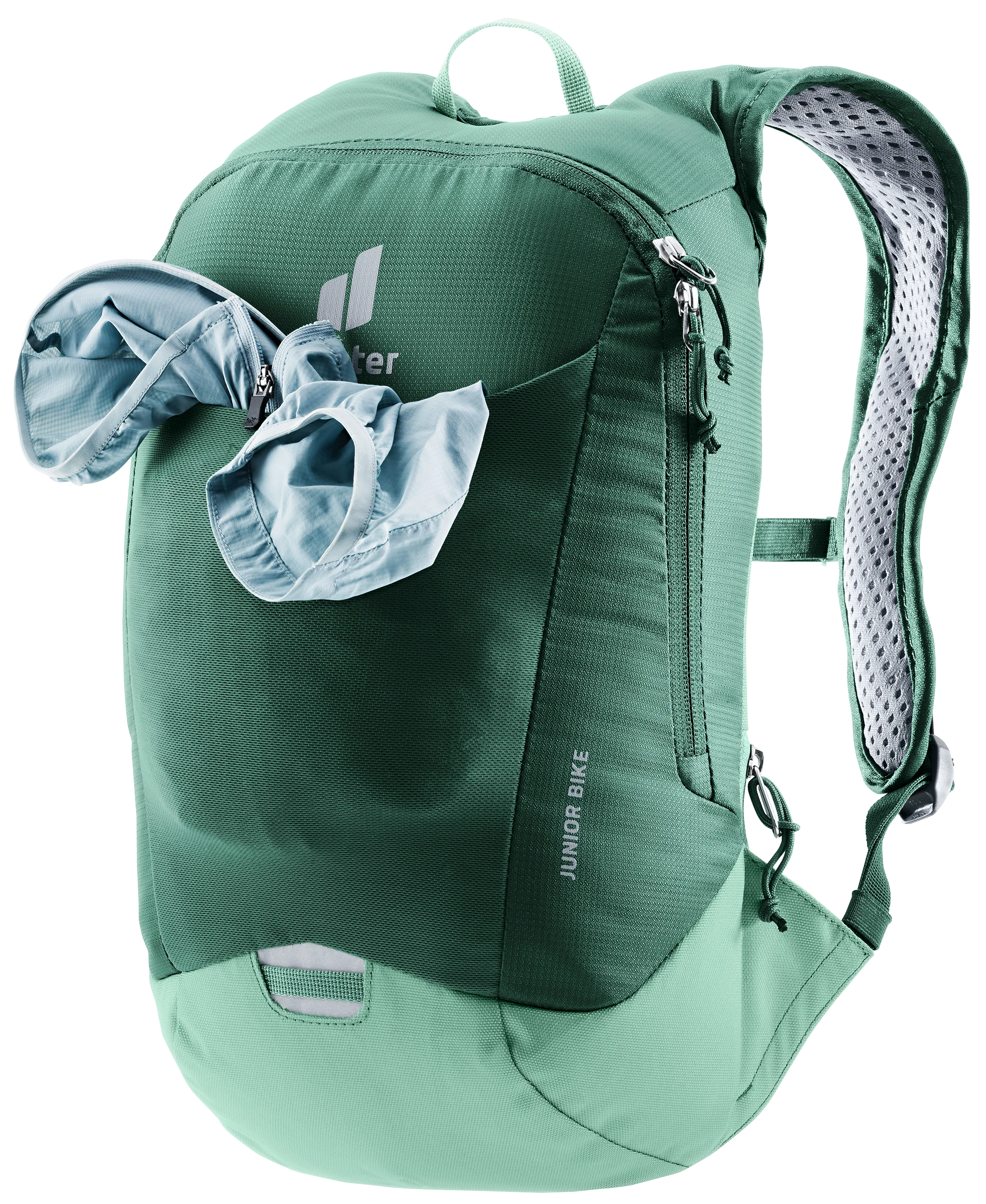 This bike backpack for budding cyclists features the deuter Airstripes back system for a snug fit, full freedom of movement and effective ventilation across the back even on the most fast-paced cycle tours. A wide zip around opening provides easy access to the main compartment, with dedicated space for a 2-liter hydration system. While a cell phone and energy bars etc. are can be stored inside the stretch mesh front pocket or zippered side pocket, at the ready. And for added safety in low light, the Junior Bike has reflective details.