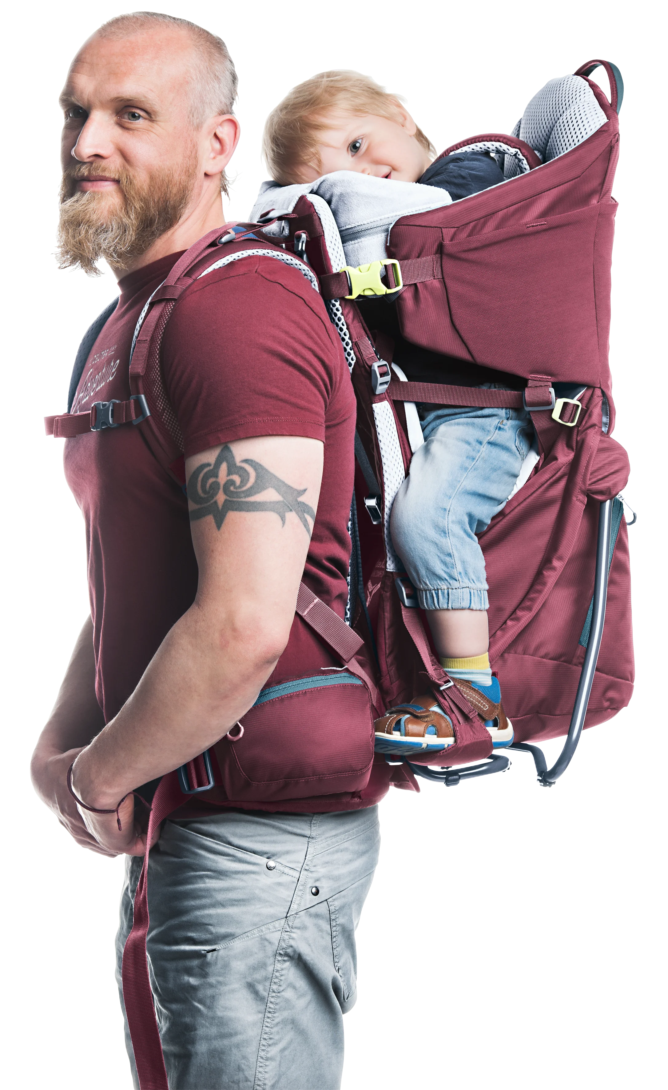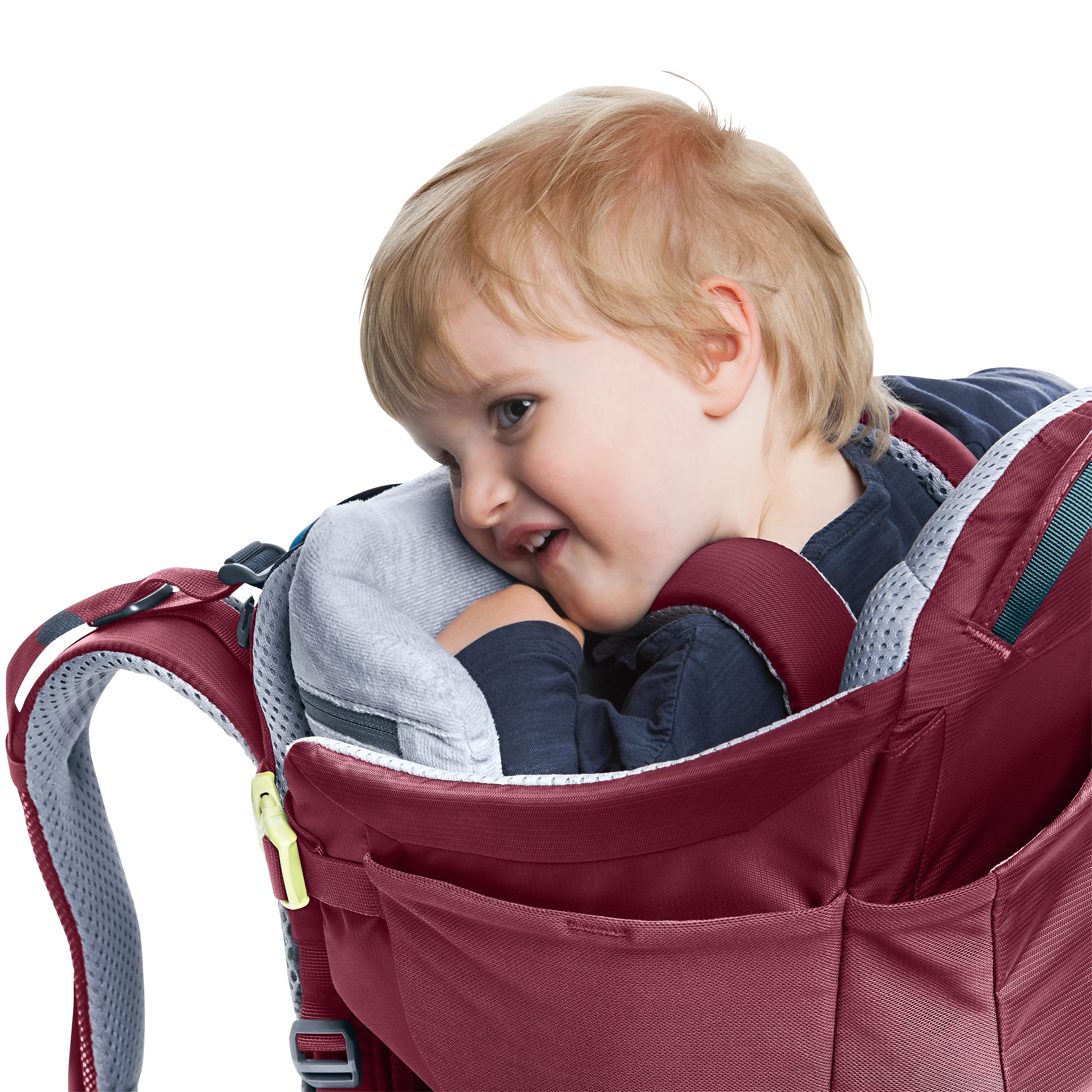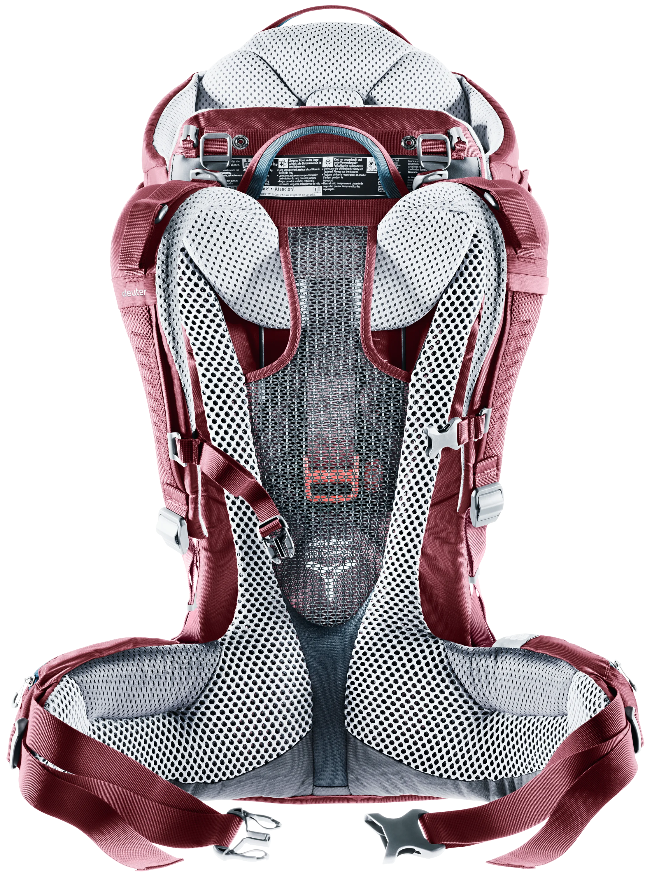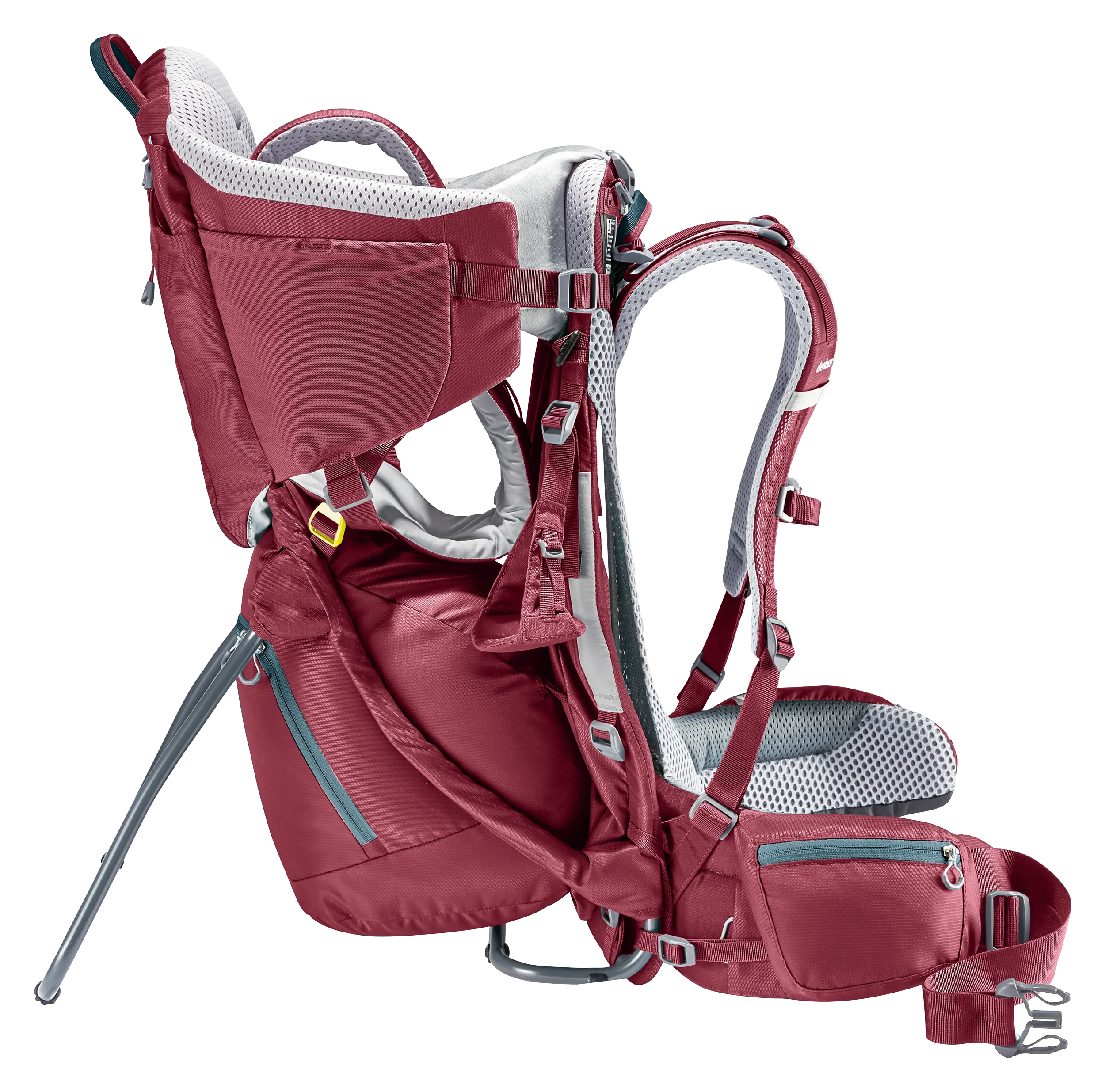 The ingenious, new Aircomfort Sensic Vario mesh backrest system makes mountain adventures all the more pleasant for families: The load is transferred perfectly, the child carrier fits snuggly while the back is fully ventilated. The child is afforded great comfort: The large, soft pillow gently braces the tired child‘s head even in the corners and supports a relaxing nap. The side access and the easy-to-access belt system of the child frame ensure safety – guaranteed by the TÜV GS safety seal of approval.