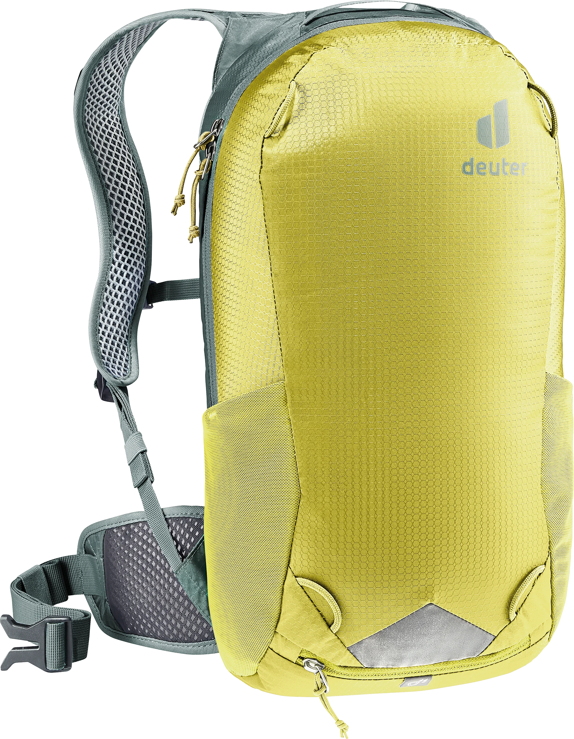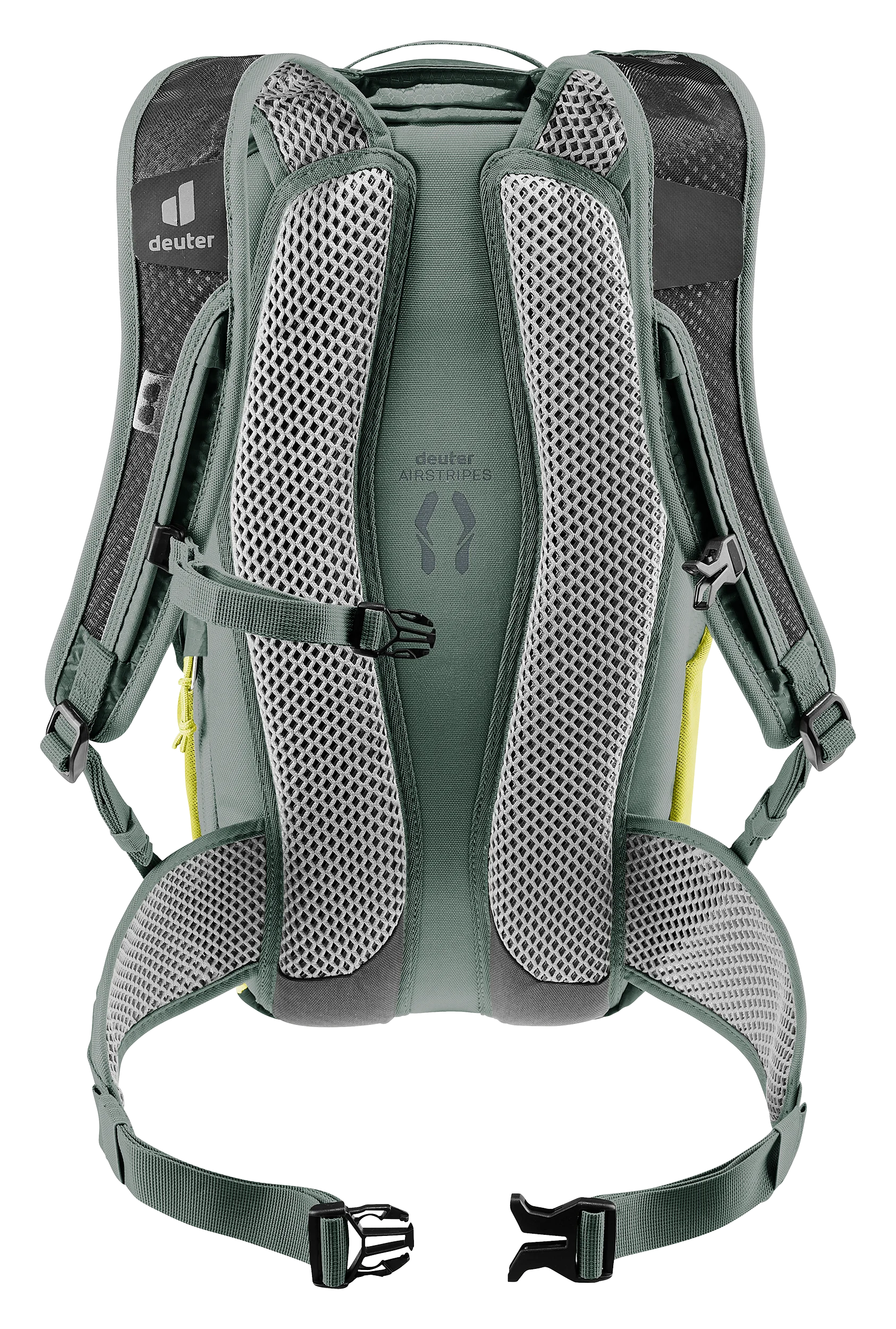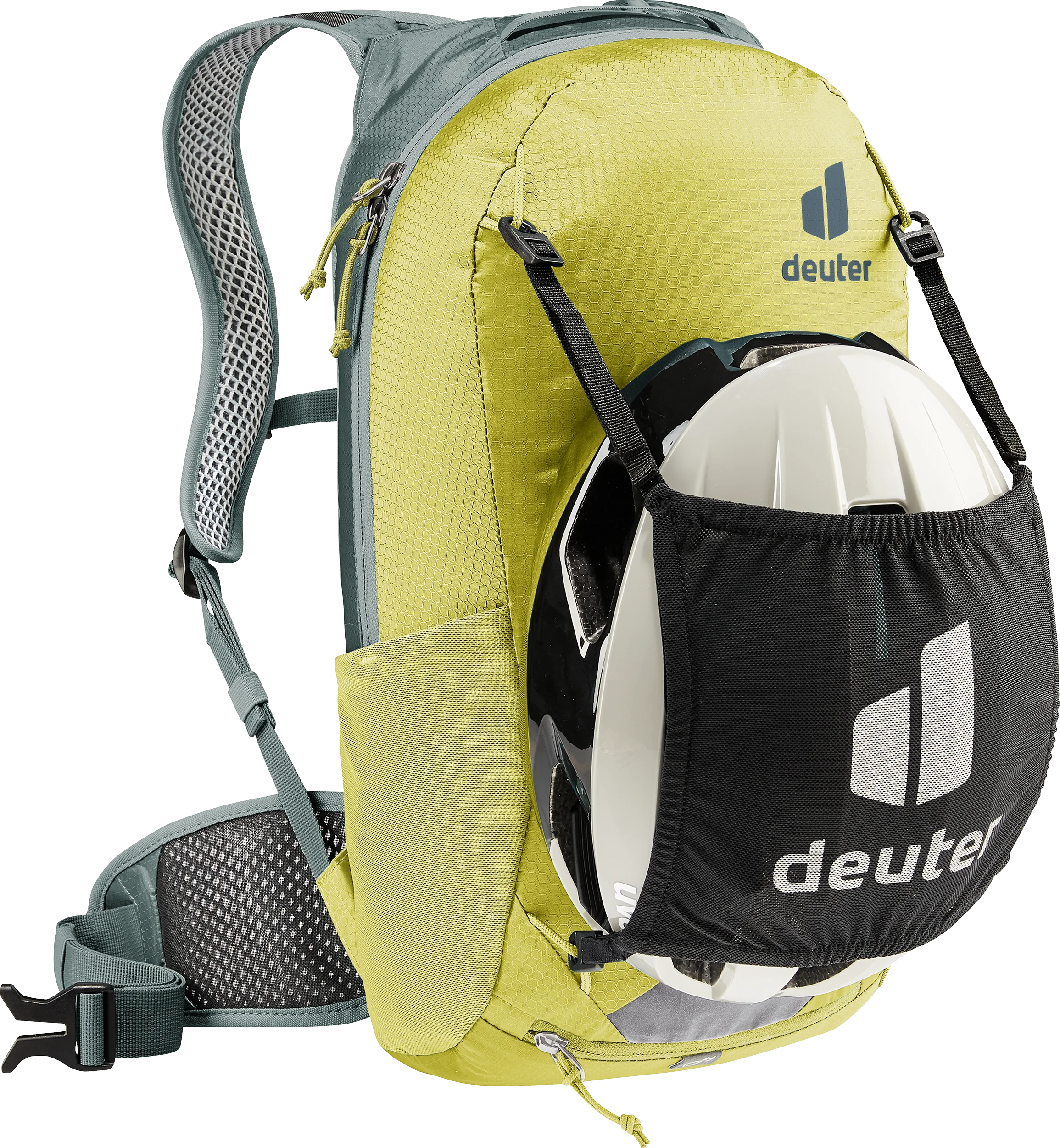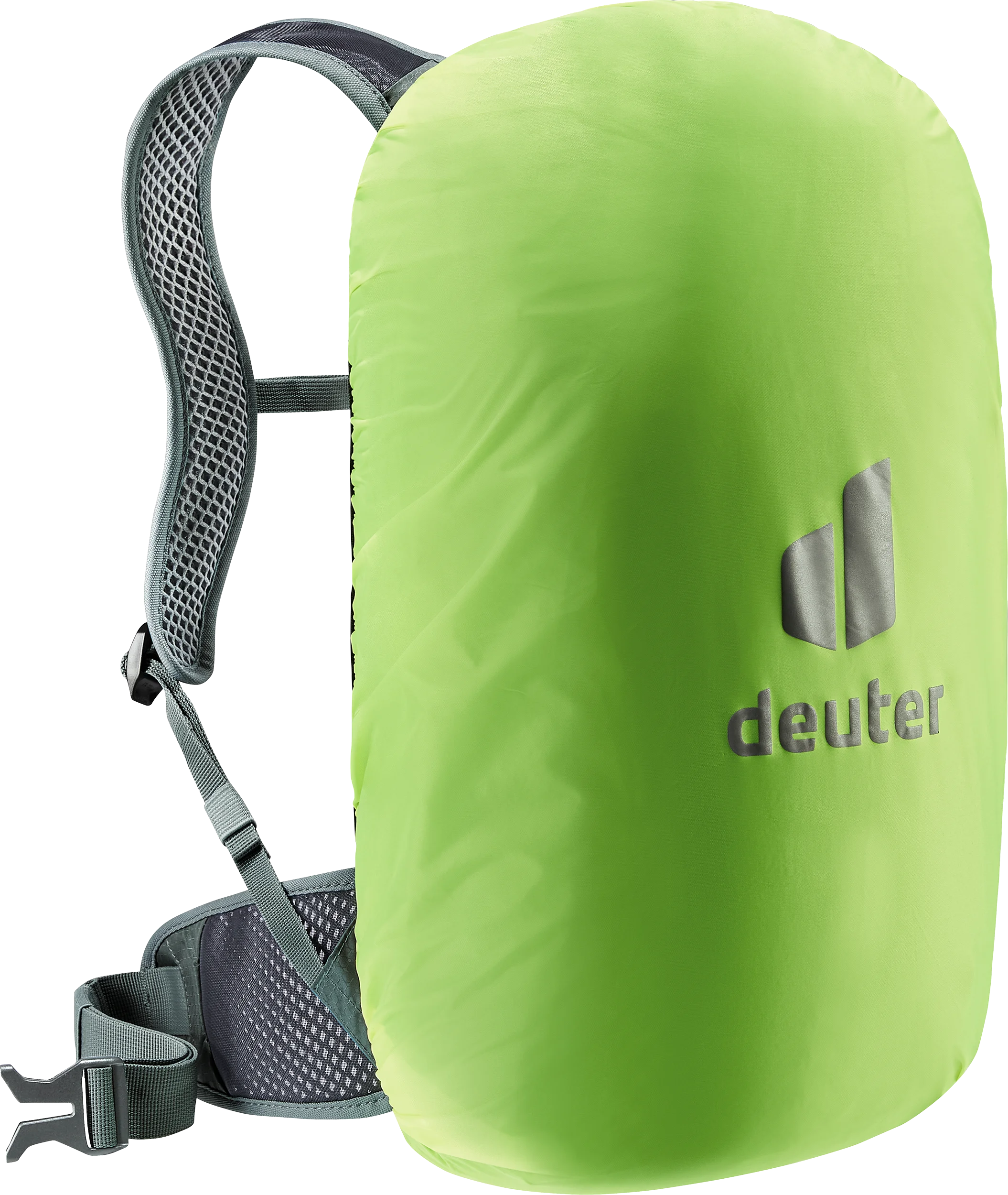 This pared down bike backpack with good weight-to-comfort ratio benefits from the breathable deuter Airstripes back system. Providing athletic mountain bikers with good airflow across the back and a snug fit for technical trails. A sternum strap and mesh hip fins give the pack additional stability. With bluesign® approved body fabric made of 100% recycled materials, and components made using environmentally friendly, resource-efficient manufacturing practices, the Race meets the highest environmental standards and is climate neutral, and PFAS free.