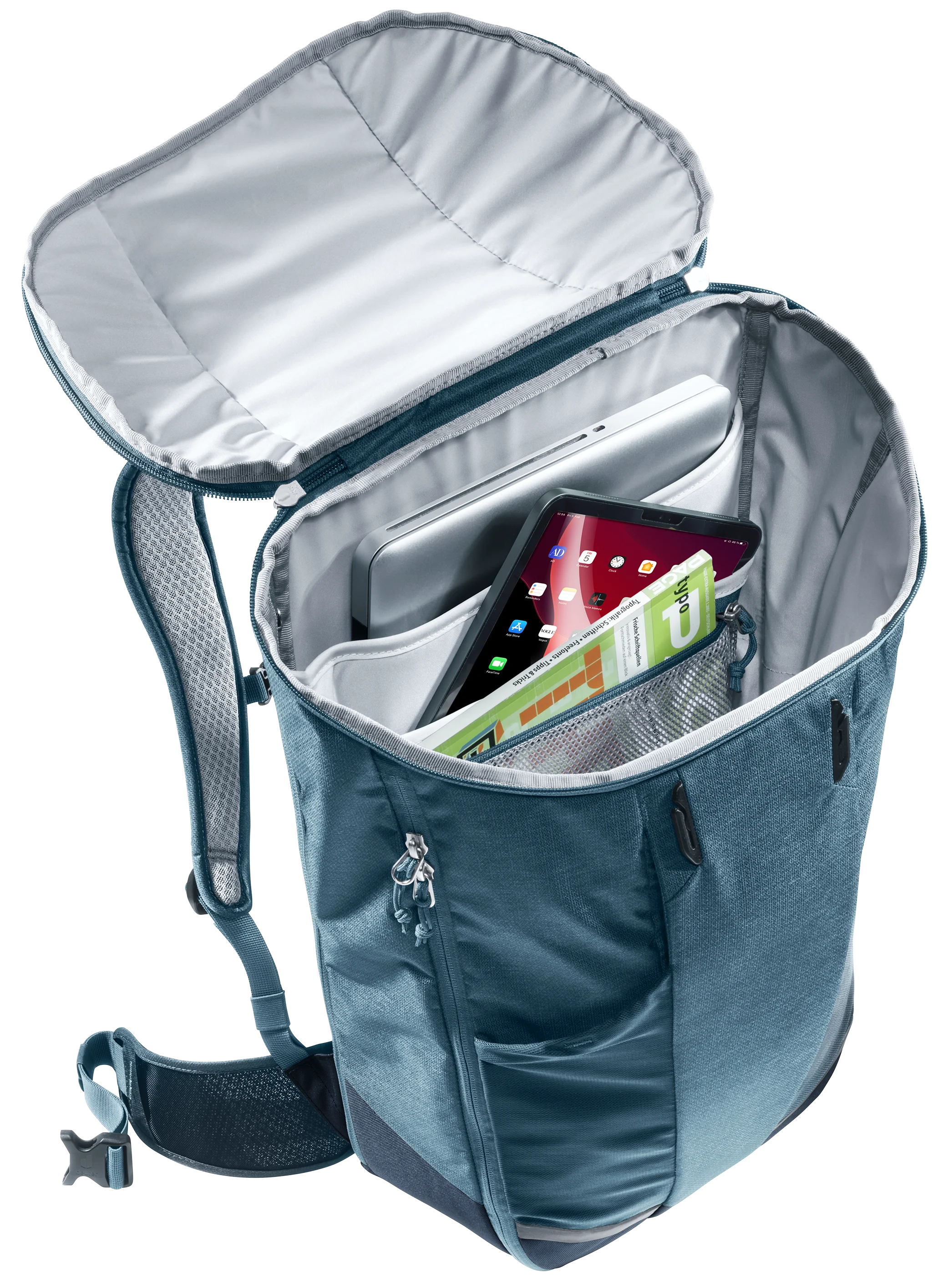 This is a good pack for general use and short commutes however, there are a few flaws that don't give the bag a full 5-star rating. Starting with the good, it is nice and spacious with a nice bucket-style opening. there are some nice dividers inside to help organise your items. an odd feature is the front zip which allows you to expand the bag a little and has a separated/isolated storage compartment (ideally to store a pair of shoes). there is also a stretch mesh pouch at the front that I normally throw my sweaty gym clothes into (it is not inside the bag and therefore, exposed to the open air). the bag is comfortable to carry and has a nice secure fit when cycling or on general day-to-day excursions. It also has a nice feature to tuck away the waist straps if you don't want to use them or make the bag look tidier. the build and feel of the bag feel sturdy and the material reminds me of a tough denim-like texture which gives me confidence in the longevity. the bag has a flat frame on the back which keeps the bag upright shape even when emptied. as stated, there are some flaws which hold it back from being a great backpack and I think they are fairly easy fixes for the next iteration/have a separate internal side pocket which would be nice). the top pouch is unnecessarily small which I think could have been closer to the full size of the lid. the side pocket pouch which is designed to fit a phone is too small to fit large phones and would be better suited for keys (it's also a tight fit, and needs to be a bit larger again)! Smaller flaws in my opinion are the size of the bag handle by the lid of the bag is extremely tight and practically impossible to use unless your fingers are smaller than paper. I hope Deuter takes this opinion into account for the next version as it's overall a great pack that I would recommend.