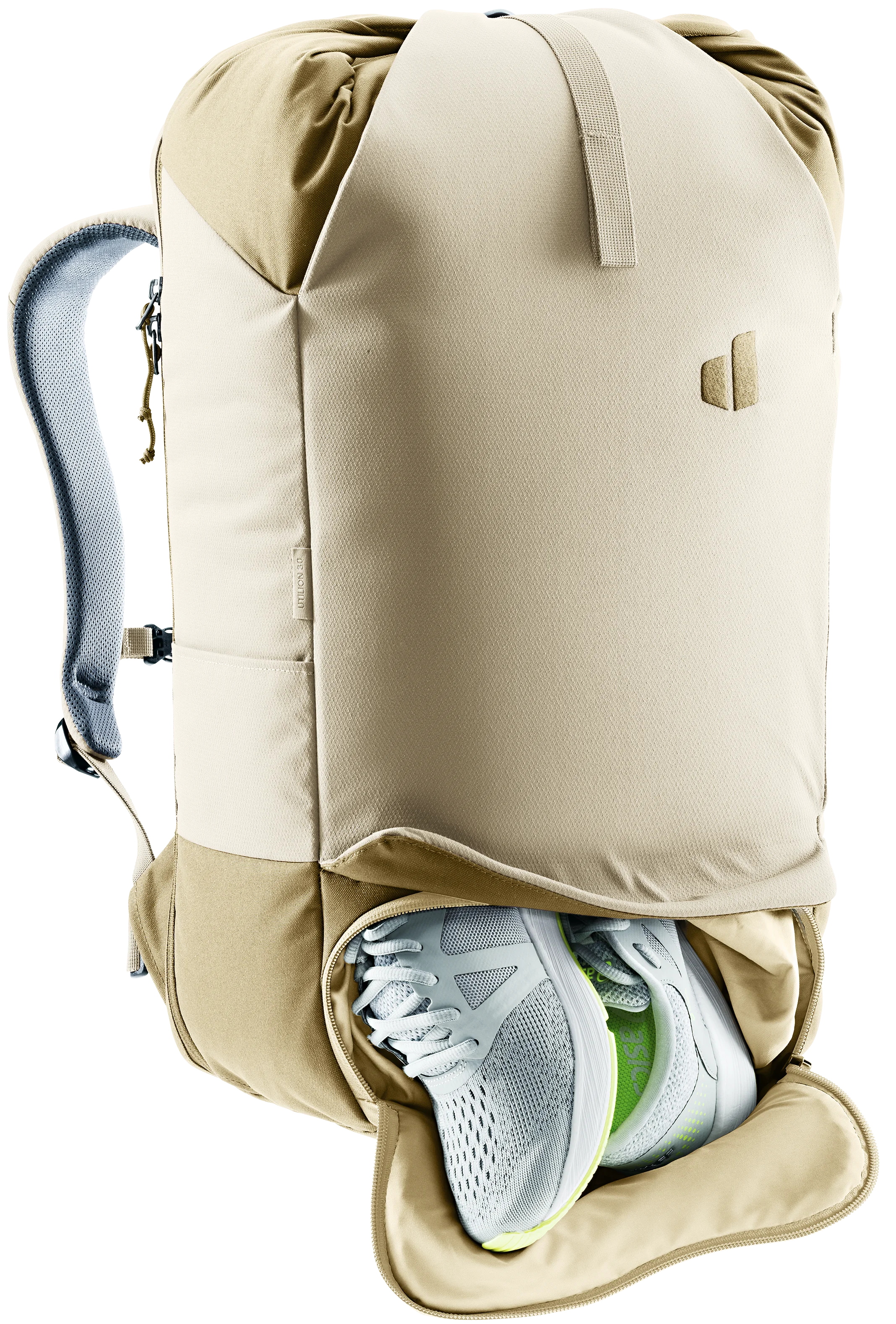 Featuring ergonomically formed shoulder straps and with the reduced contact surface of deuter’s Airstripes back system, the all-rounder Utilion’s stand-out qualities are ventilation and carry comfort. A roll-top opening with buckle closure, together with zip around back panel opening, provide quick access to contents in the main compartment. The PFAS-free fabric of this Green Button-certified, bluesign® product is made from 100% recycled PET bottles (24 x 0.5-liter bottles) and according to bluesign® standards.
