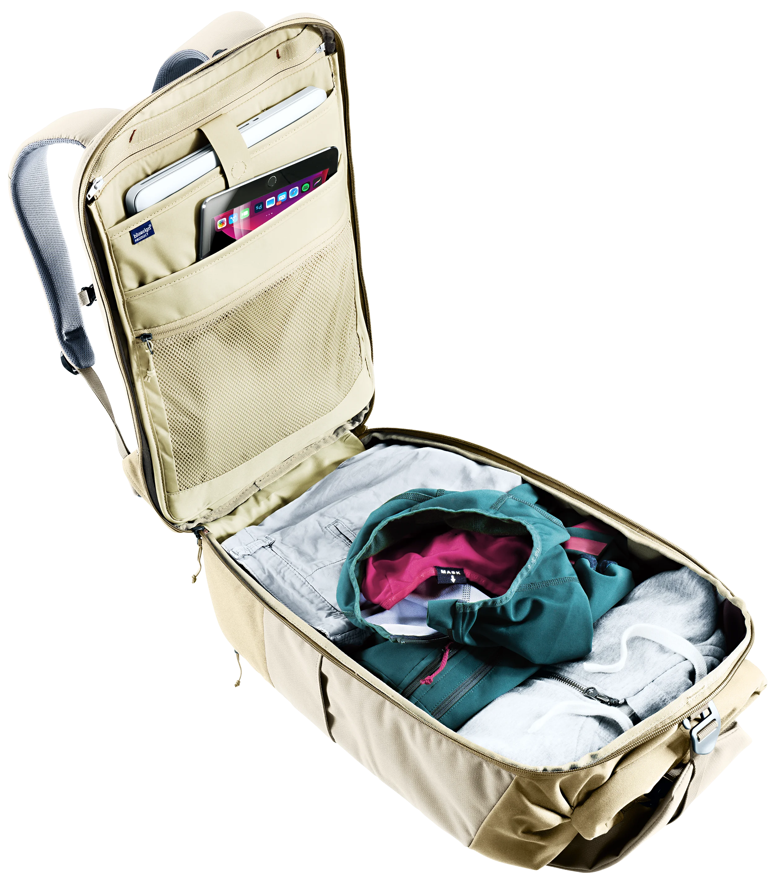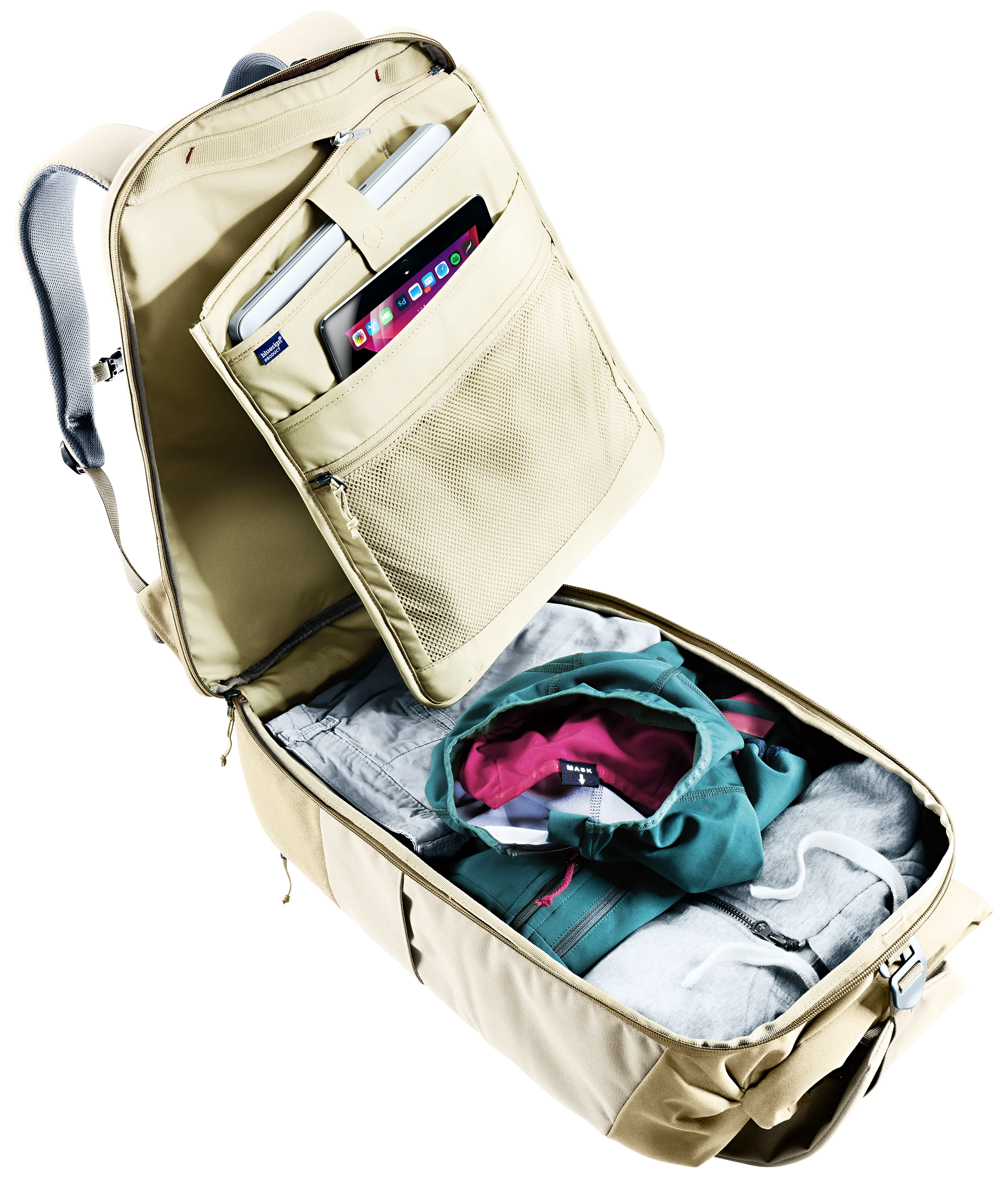 - Zip-in organizer unit for a tablet, documents etc. with padded laptop sleeve (16”)