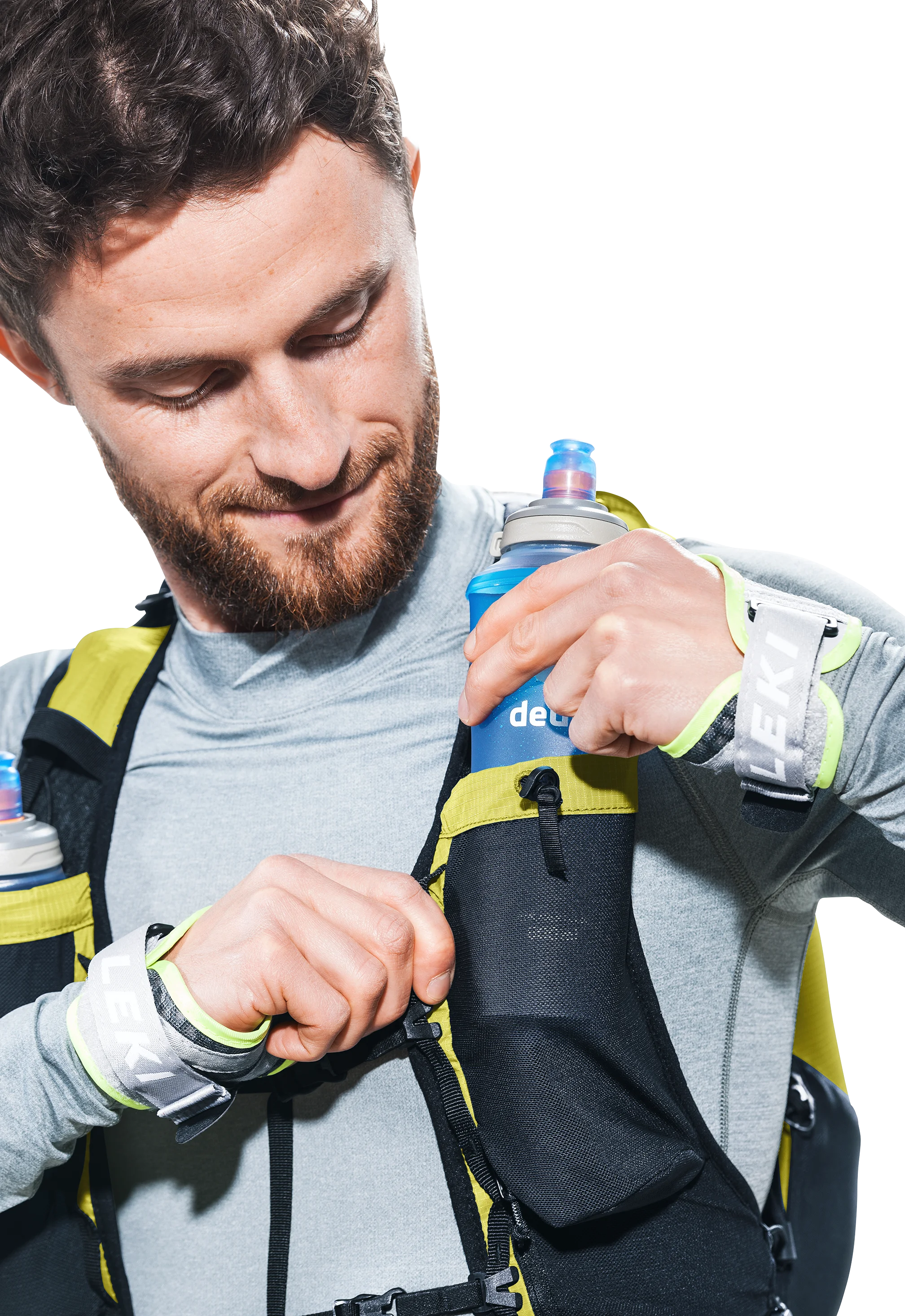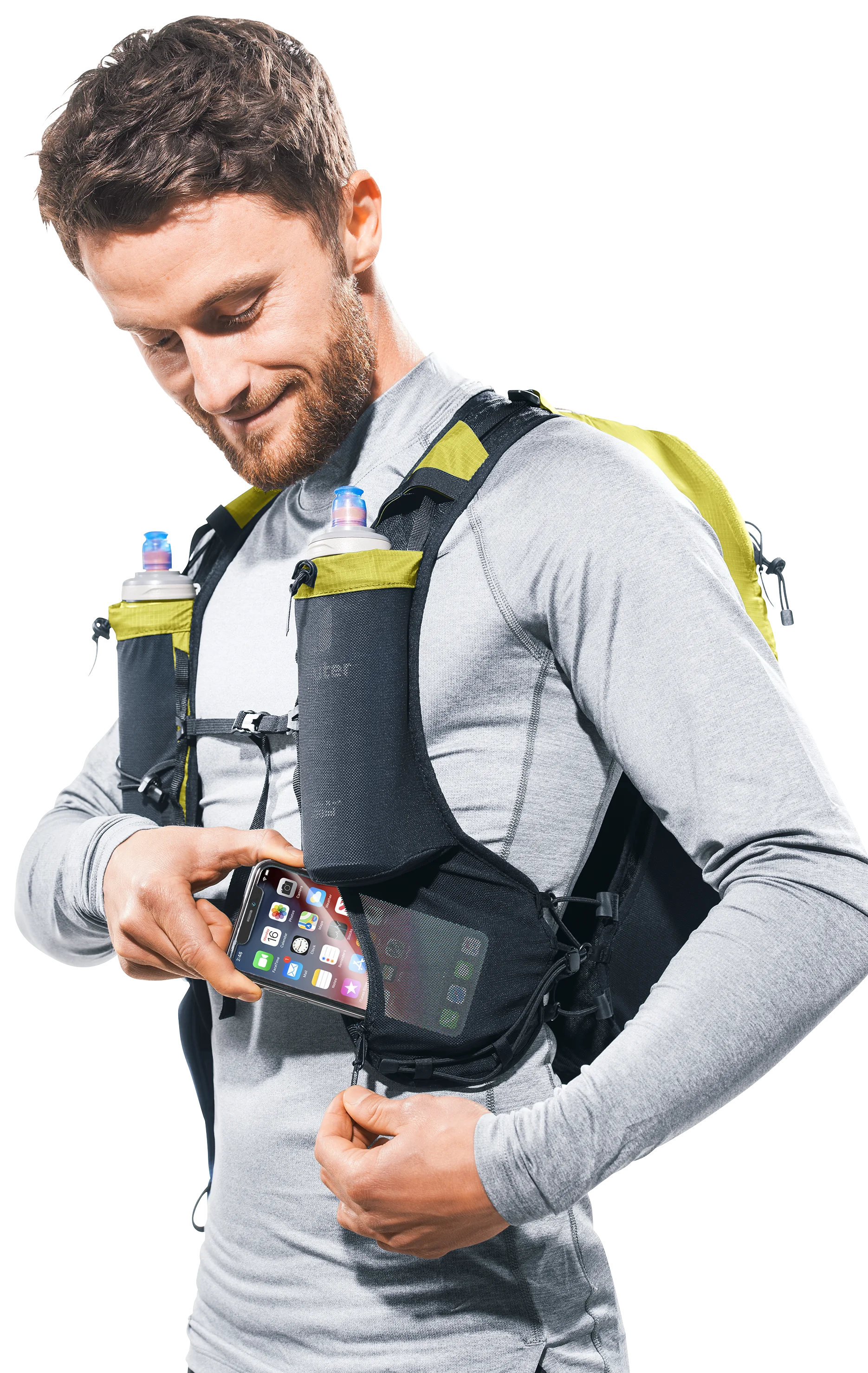 - Soft flask pouches on the shoulder straps