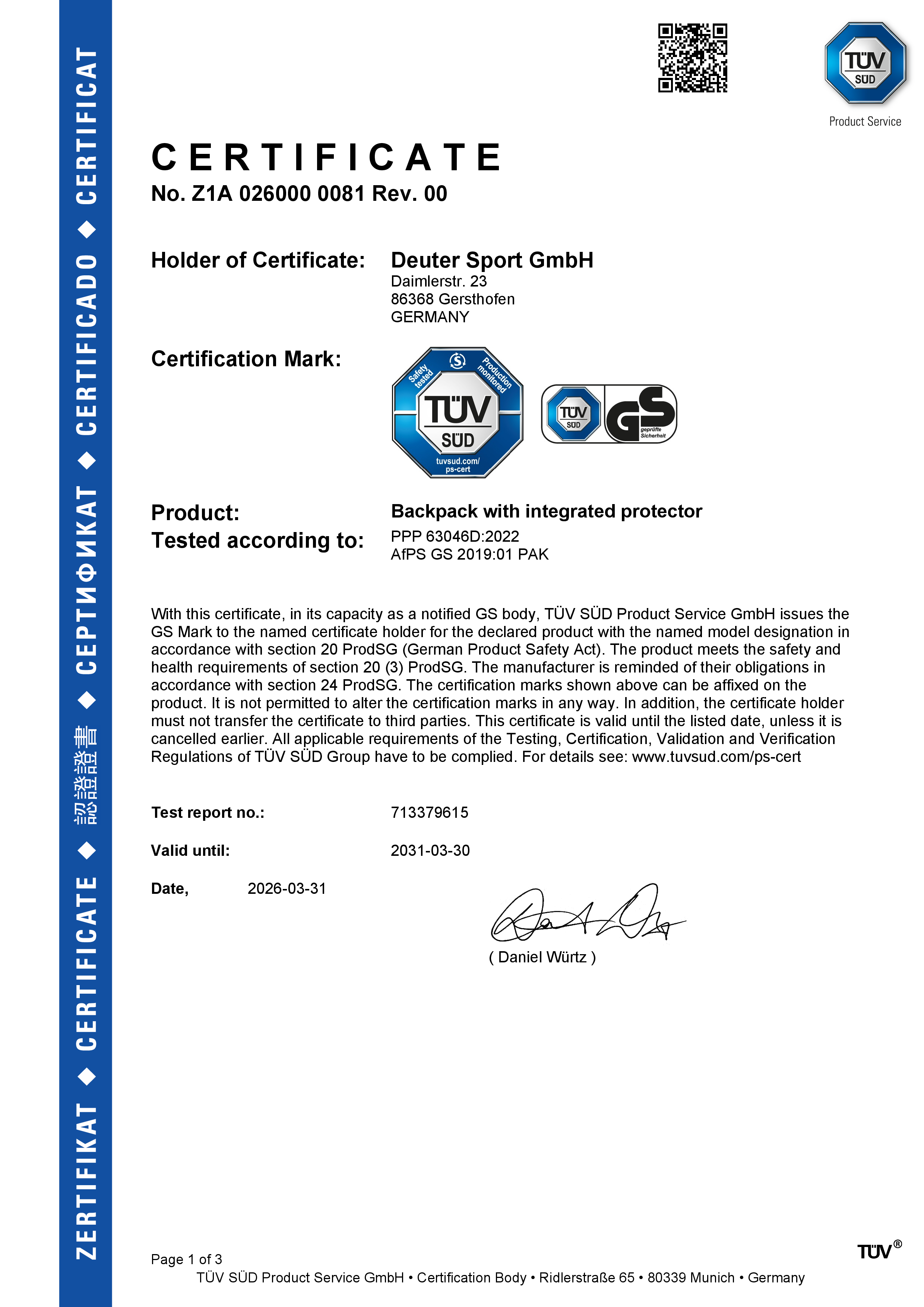 This product has been manufactured by deuter without the use of per- and polyfluorinated chemicals with the aim of reducing reliance on substances that are harmful to the environment and health.