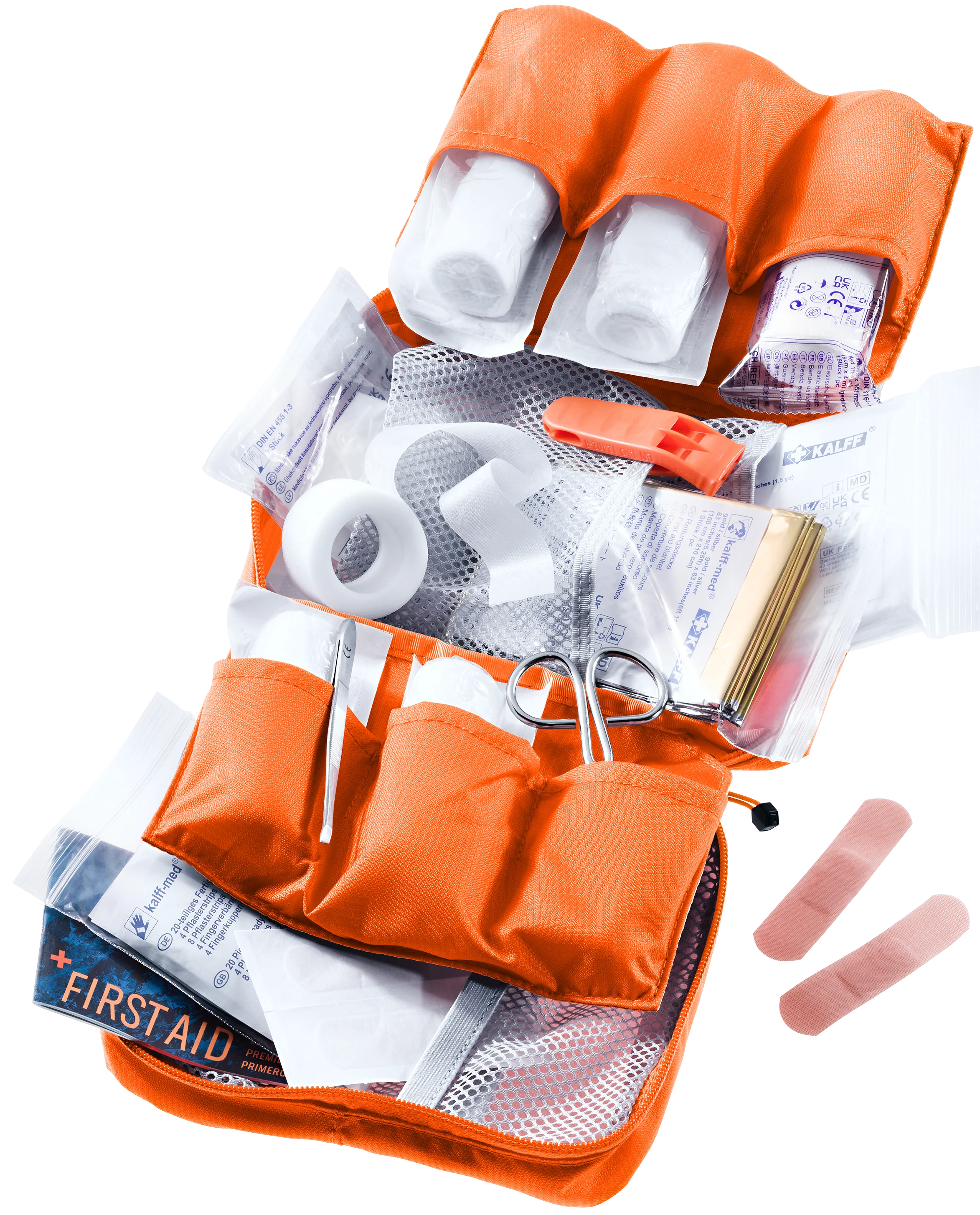 Attention: The contents listed above constitute a basic set of first aid equipment, which can be complemented in consultation with your family doctor (medication) according to your destination.