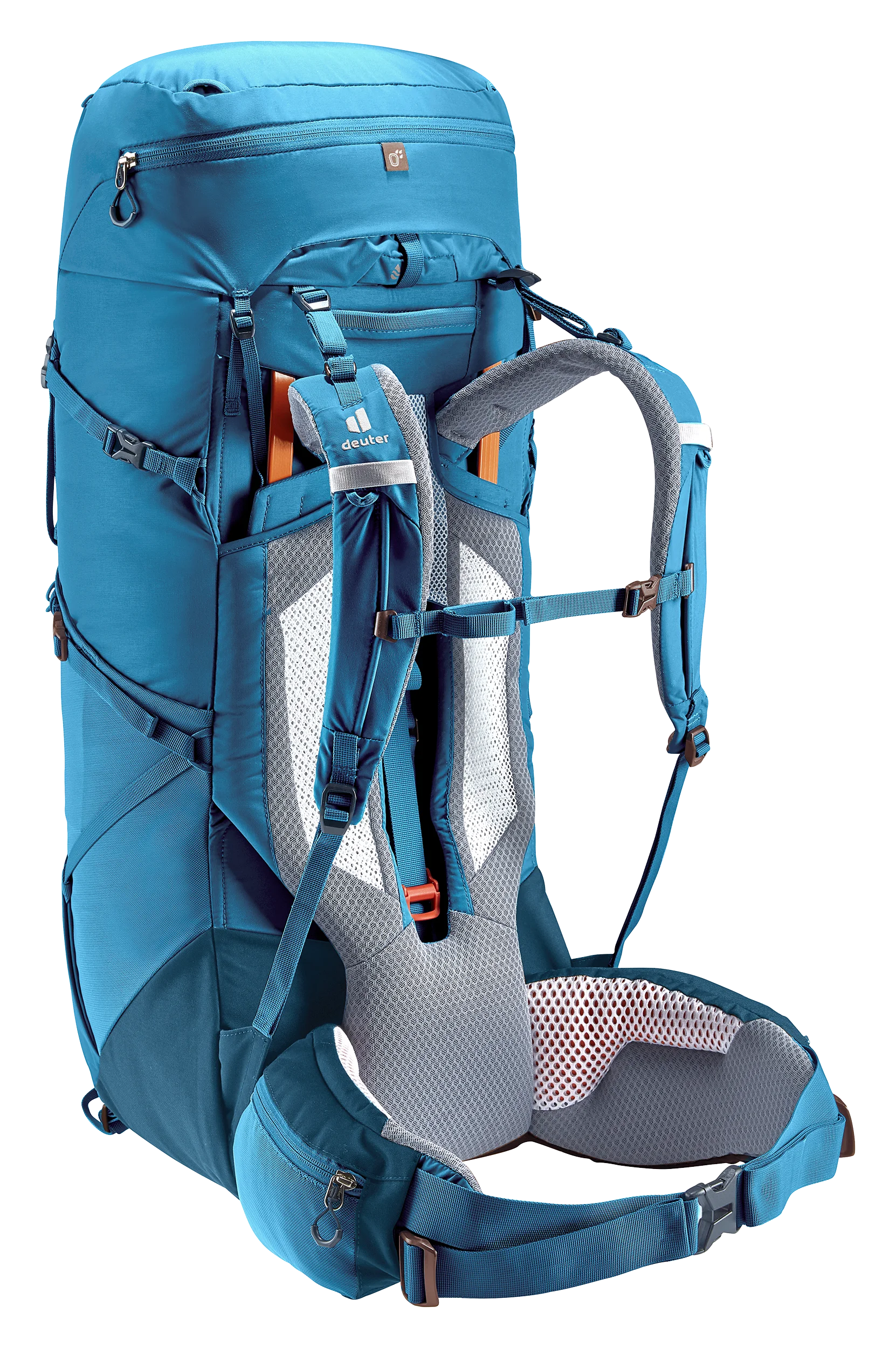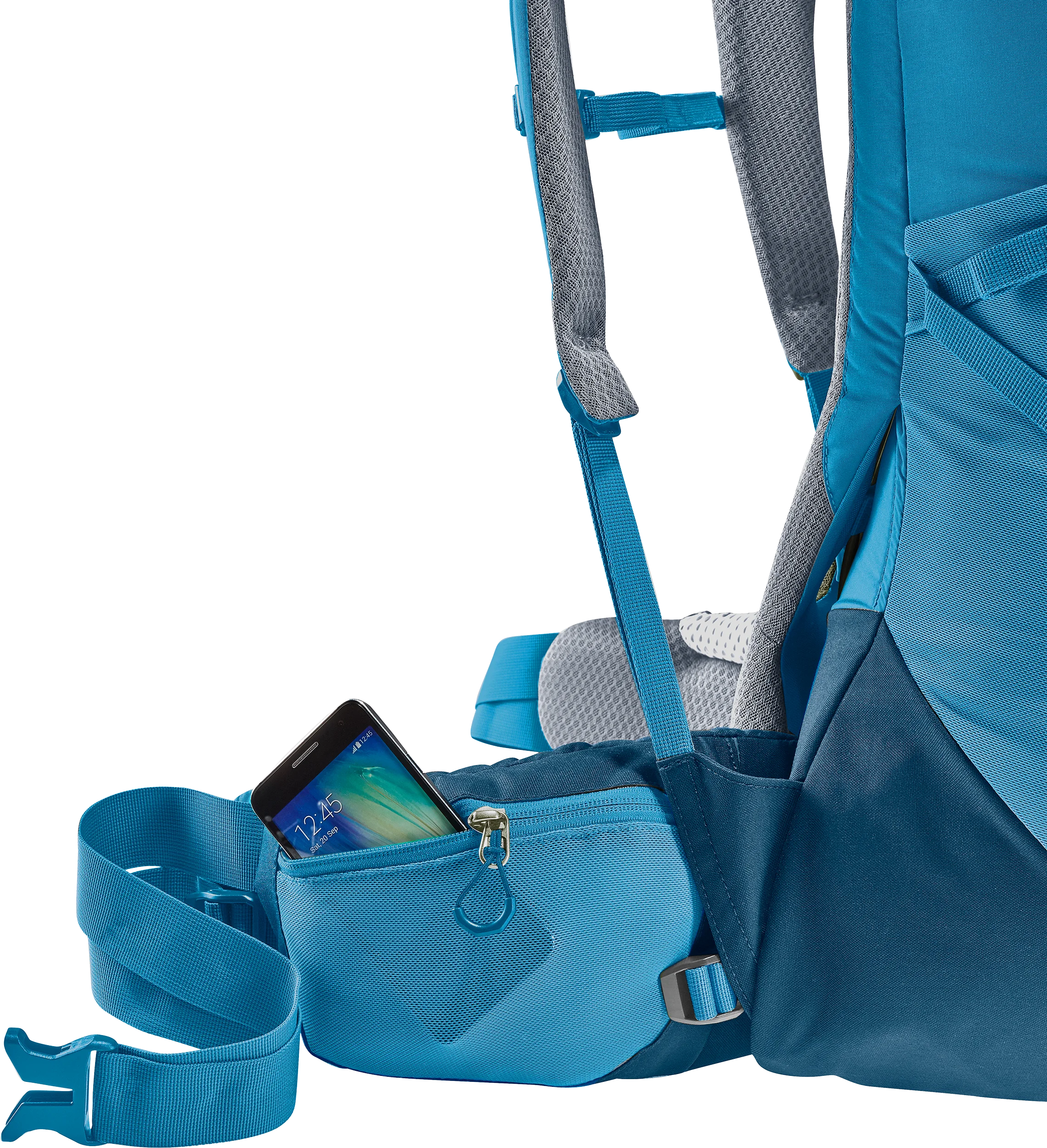 This comfortable pack is very versatile thanks to modular gear straps that can be positioned to attach a range of items depending on the undertaking or the gear you need to take. Its superior carry comfort is down to the deuter Aircontact back system with Air Spacer mesh and a large ventilation channel, plus ergonomic ActiveFit shoulder straps and an adjustable sternum strap. The Y-shaped frame in combination with mobile hip fins that wrap around the hips and deuter’s ergonomic trapezoid-shaped lumbar pad combine to effectively distribute and stabilize the load.