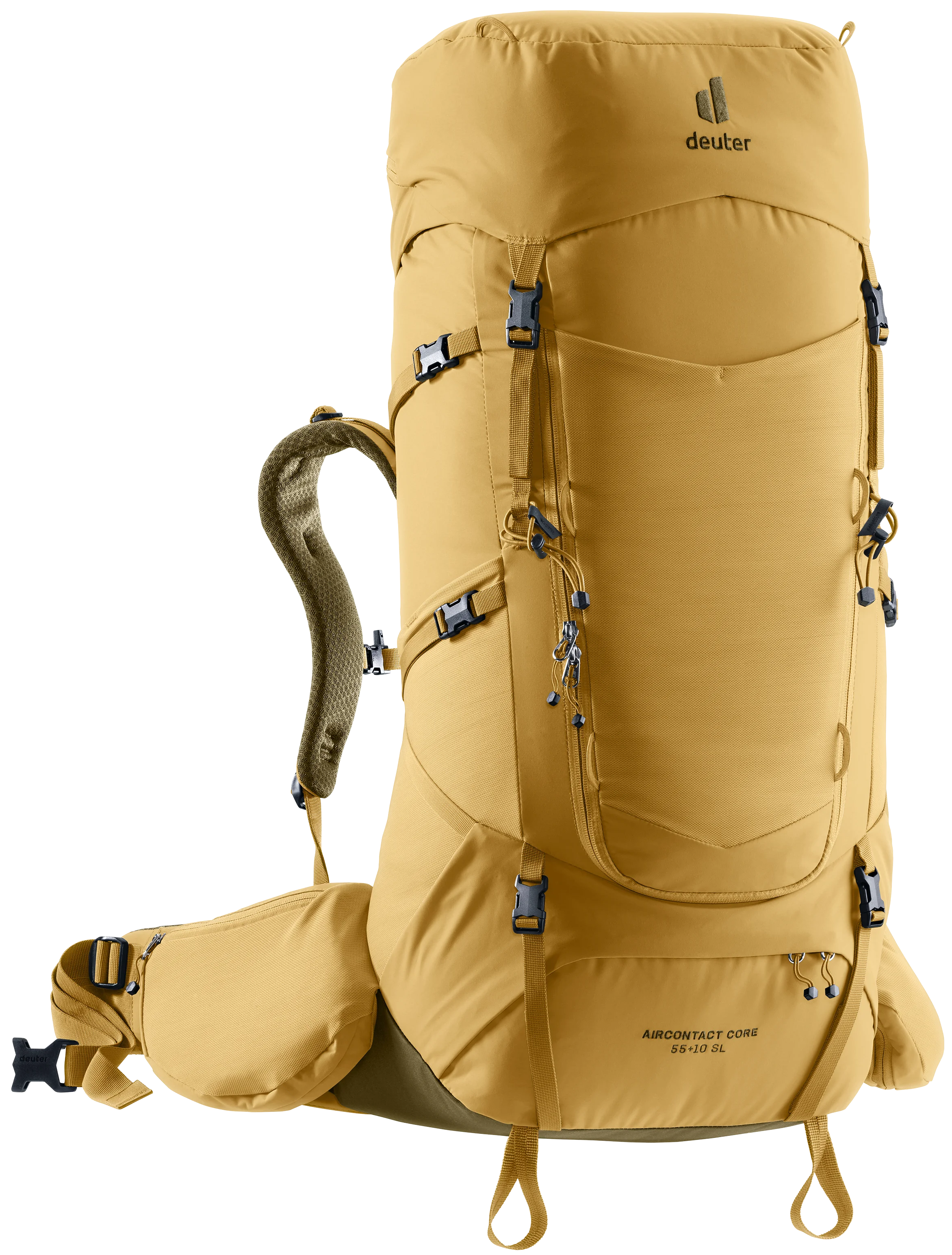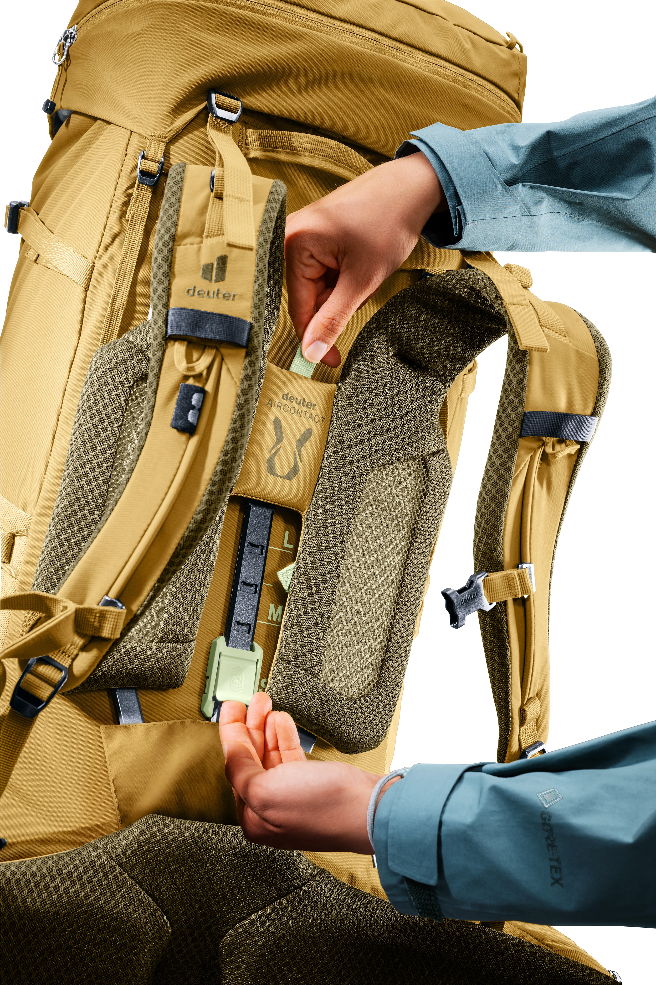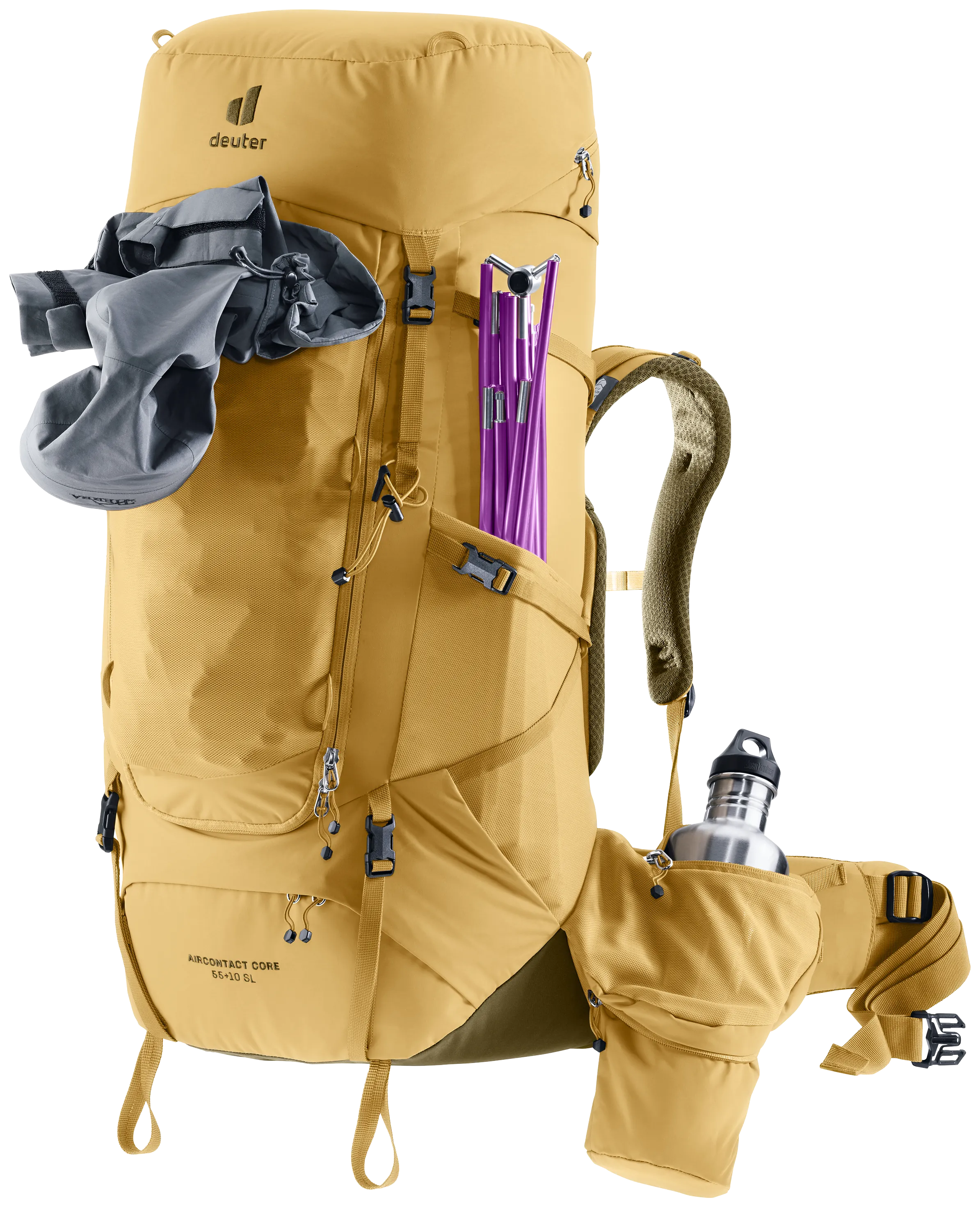 Our new VariClick system offers five-stage back length adjustment for a tailored fit. This easy-to-use feature benefits from an audible ‘click’ when in position and because it stems from the center of the pack creates an evenly adjusted length. The new ActiveBalance shoulder straps have a pivoting shoulder panel that moves independently from the pivoting VariFlex hip fins for greater load stability and a more central positioning of the pack. While two anchor positions for the stabilizer straps adapt to the size of the person carrying the pack. The ECL (ergonomic comfort lock) system transfers the load effectively onto the hips. The Y-shaped aluminum frame gives the pack stability and, combined with the breathable Air Spacer mesh on the Aircontact back system, generates maximum airflow across the back. Continuous one-piece padding for the hip fins and shoulder straps cuts out pressure spots and increases the carrying comfort.