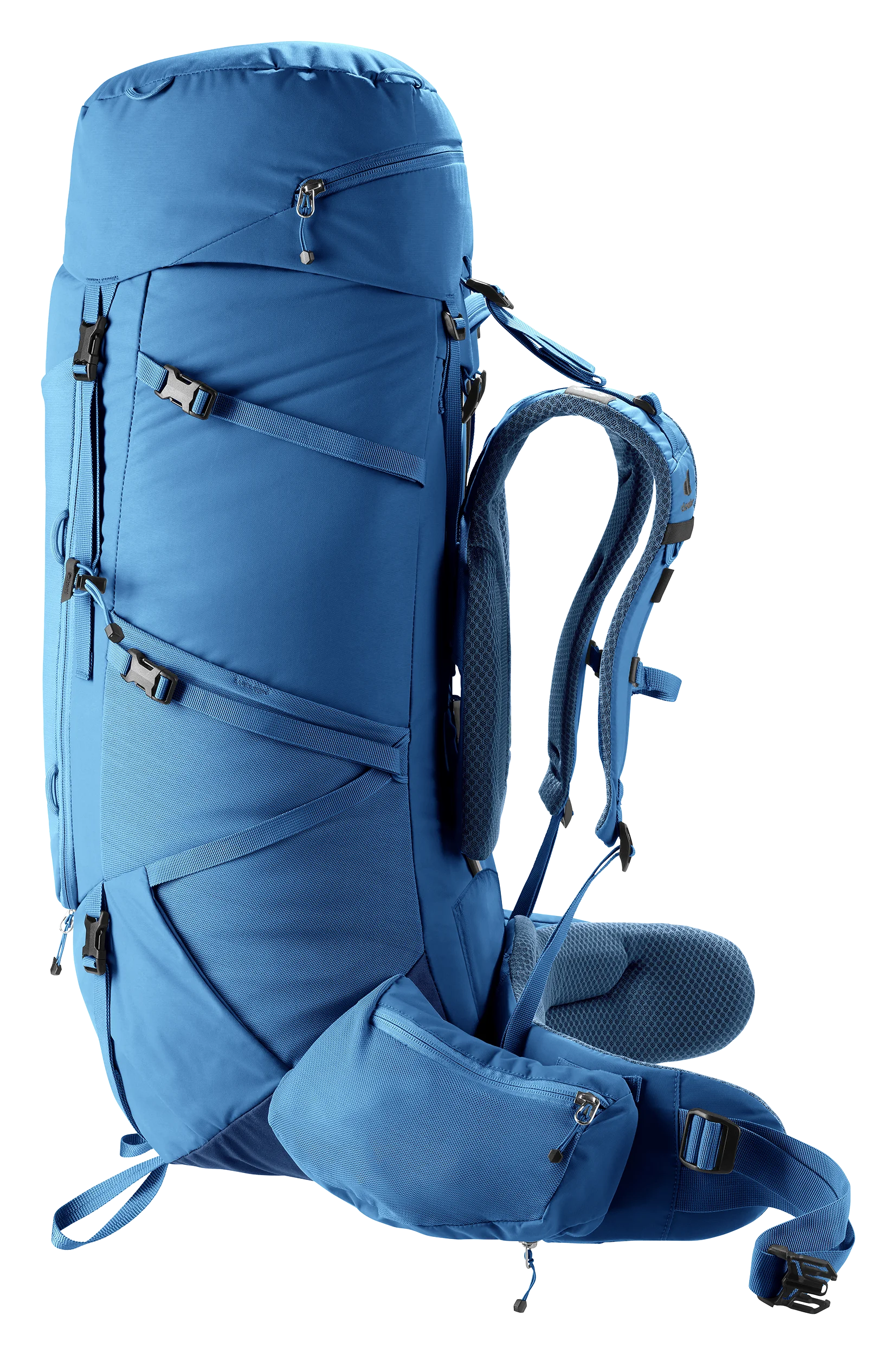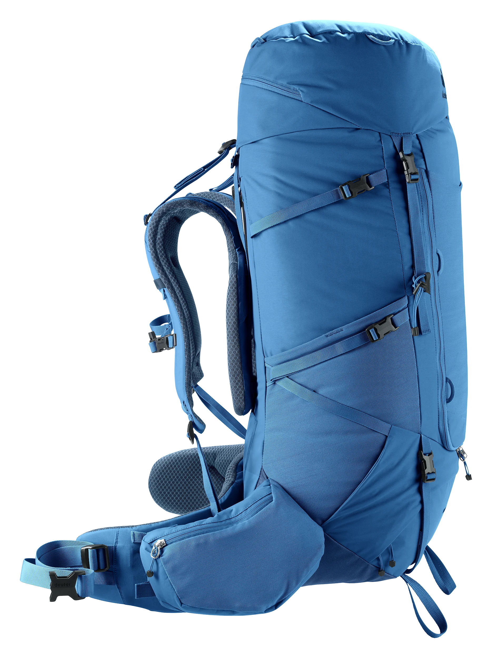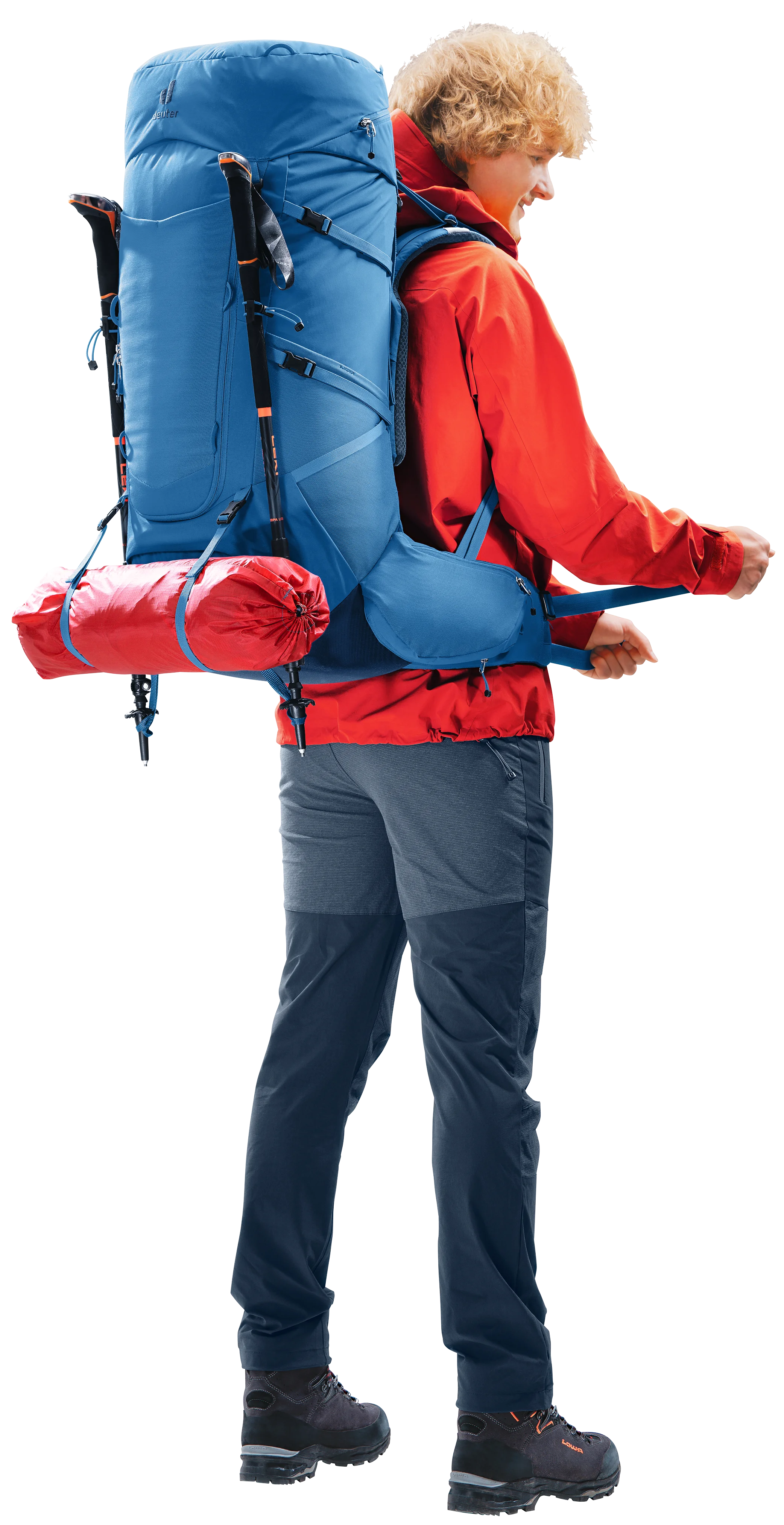Our new VariClick system offers five-stage back length adjustment for a tailored fit. This easy-to-use feature benefits from an audible ‘click’ when in position and because it stems from the center of the pack creates an evenly adjusted length. The new ActiveBalance shoulder straps have a pivoting shoulder panel that moves independently from the pivoting VariFlex hip fins for greater load stability and a more central positioning of the pack. While two anchor positions for the stabilizer straps adapt to the size of the person carrying the pack. The ECL (ergonomic comfort lock) system transfers the load effectively onto the hips. The Y-shaped aluminum frame gives the pack stability and, combined with the breathable Air Spacer mesh on the Aircontact back system, generates maximum airflow across the back. Continuous one-piece padding for the hip fins and shoulder straps cuts out pressure spots and increases the carrying comfort.