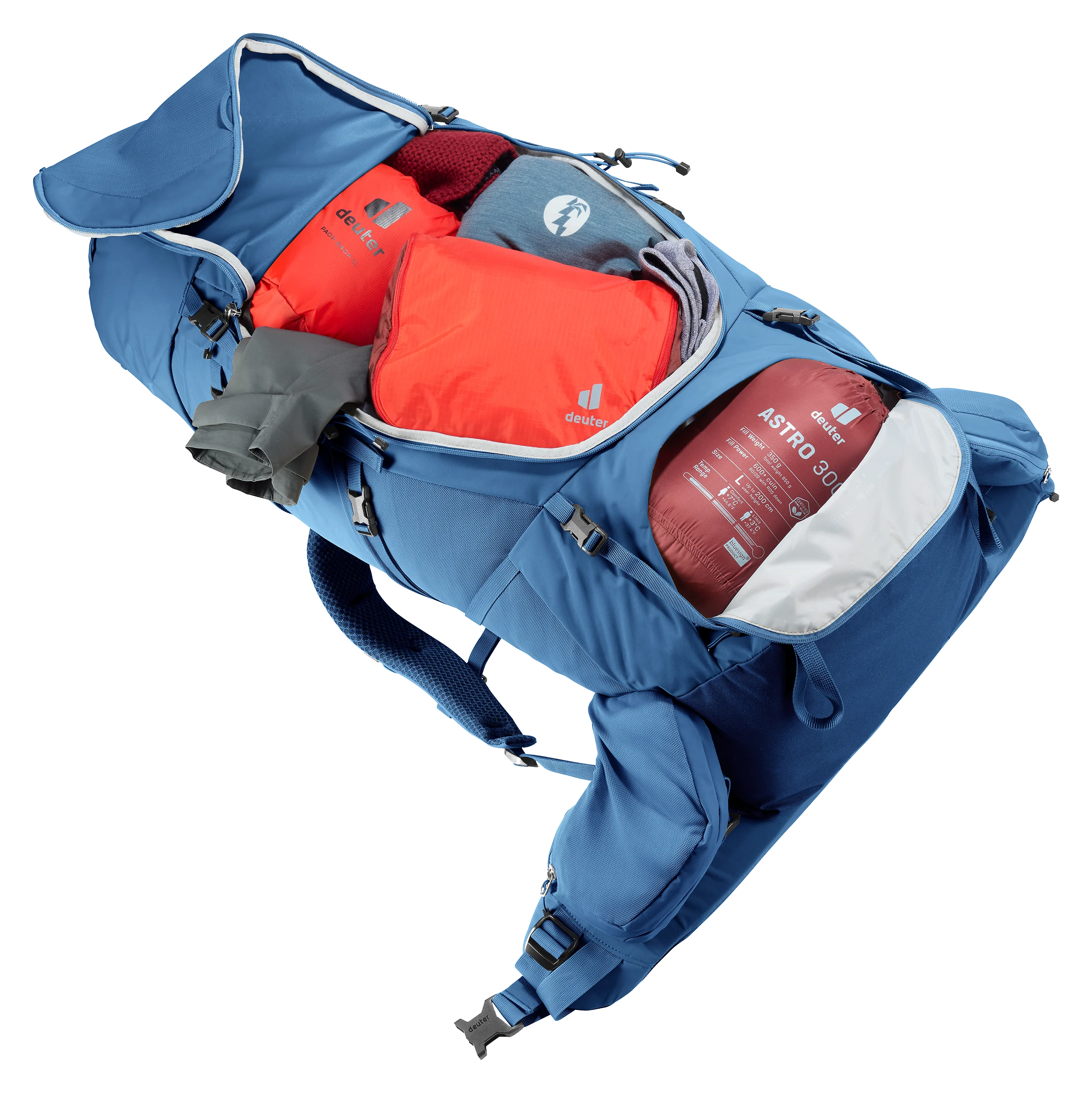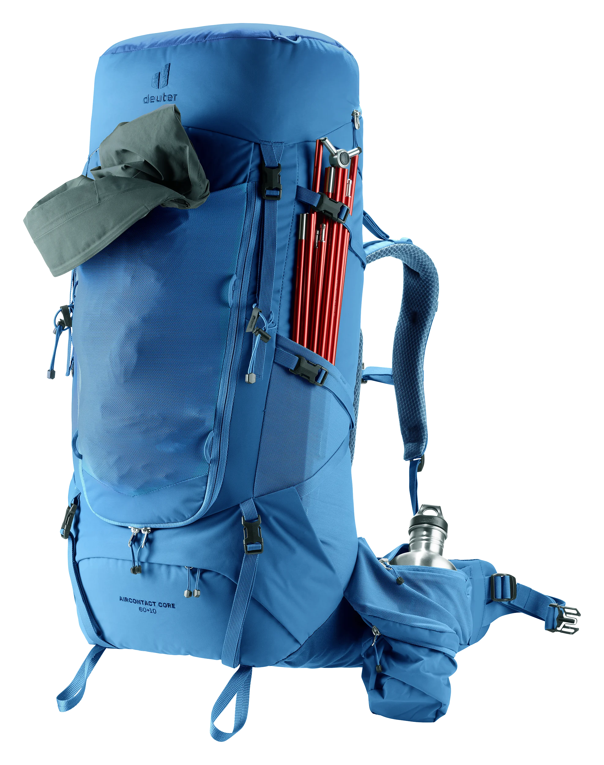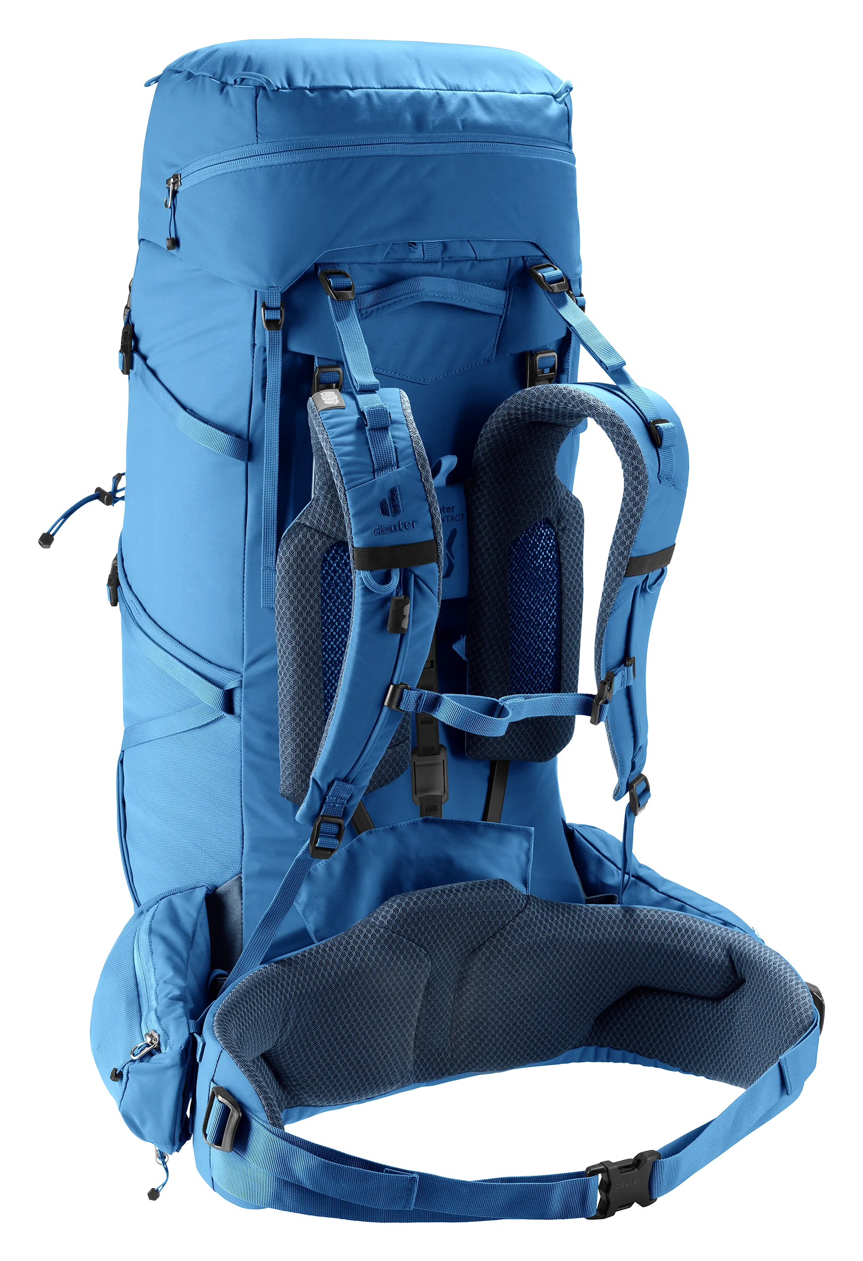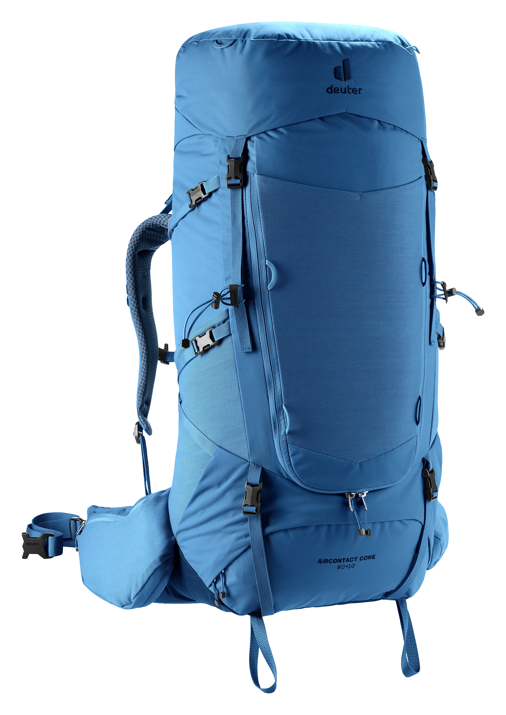 Our new VariClick system offers five-stage back length adjustment for a tailored fit. This easy-to-use feature benefits from an audible ‘click’ when in position and because it stems from the center of the pack creates an evenly adjusted length. The new ActiveBalance shoulder straps have a pivoting shoulder panel that moves independently from the pivoting VariFlex hip fins for greater load stability and a more central positioning of the pack. While two anchor positions for the stabilizer straps adapt to the size of the person carrying the pack. The ECL (ergonomic comfort lock) system transfers the load effectively onto the hips. The Y-shaped aluminum frame gives the pack stability and, combined with the breathable Air Spacer mesh on the Aircontact back system, generates maximum airflow across the back. Continuous one-piece padding for the hip fins and shoulder straps cuts out pressure spots and increases the carrying comfort.