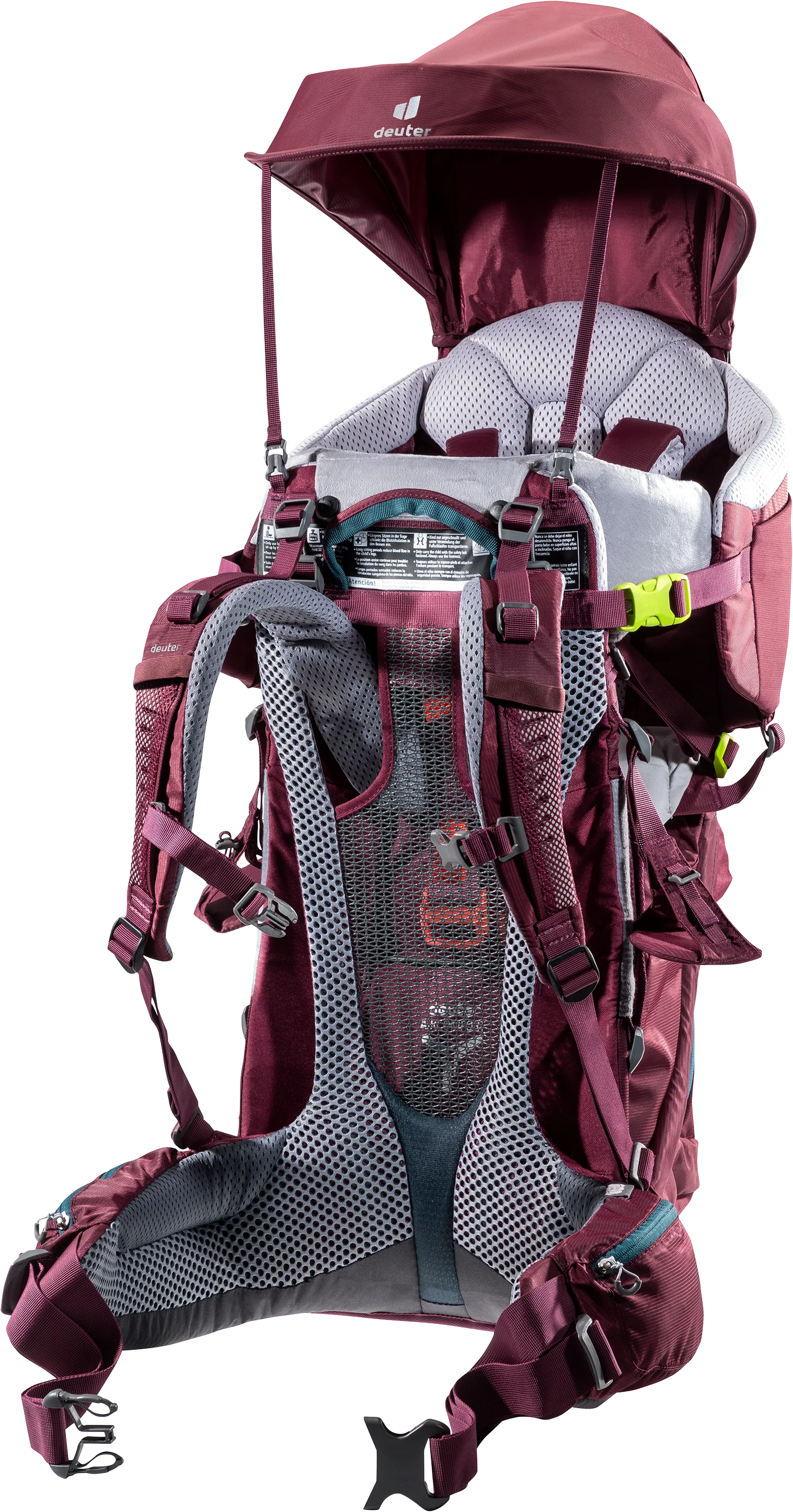 With the ingenious, new Aircomfort Sensic Vario mesh back system, mountain adventures for families become much more pleasant: the load is transferred perfectly, the child carrier sits compactly - and yet the back is fully ventilated. Passengers are comfortable, too: the large, soft cushion gently cushions the tired child's head, even in the corners of the Kraxe, and supports a relaxed sleep. The side entry and the easily accessible belt system of the Kinderkraxe ensure safety - which is also guaranteed by the TÜV GS seal.