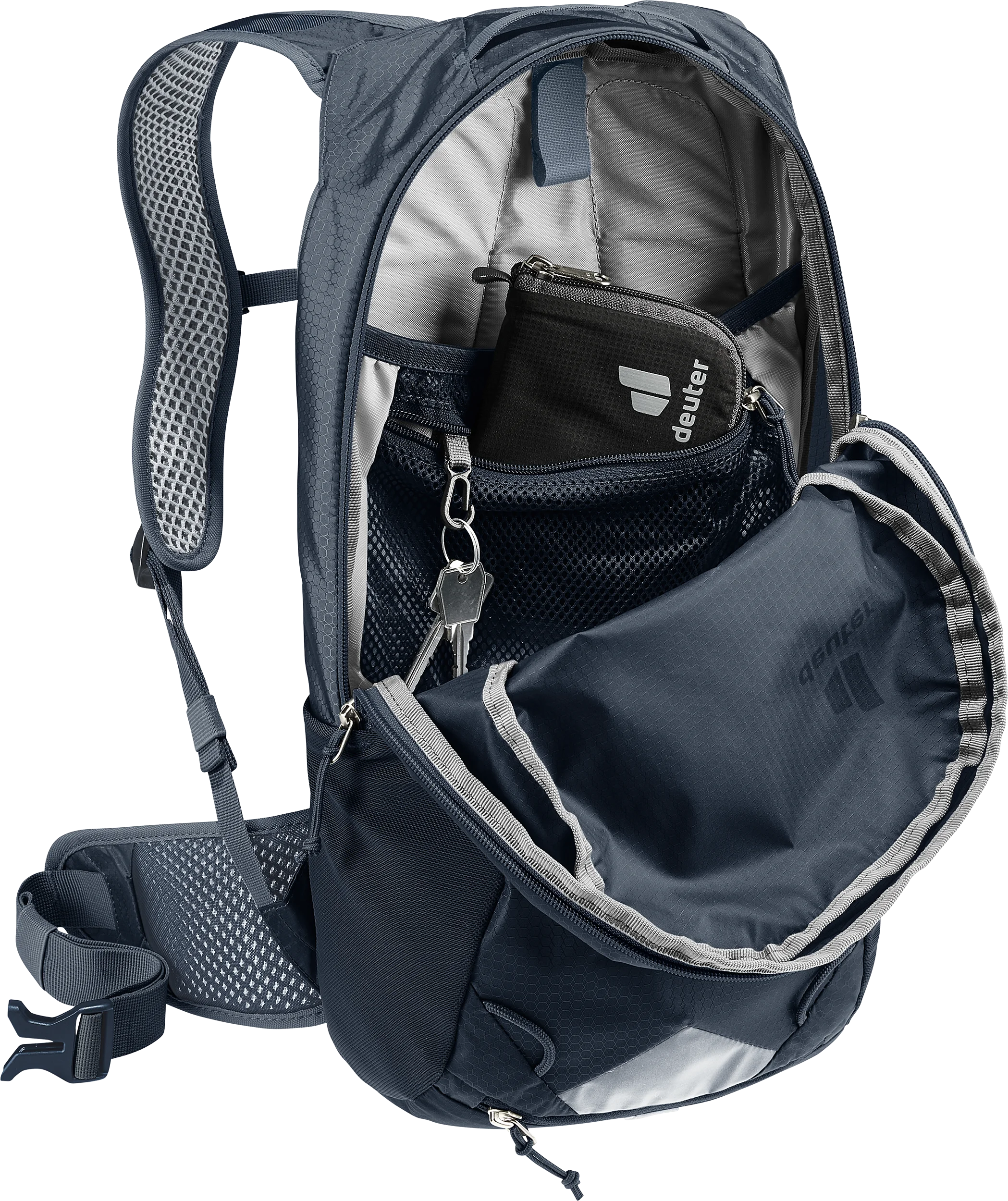 • Elasticated inner compartment for storing wet/sweaty clothing, water reservoir, etc.