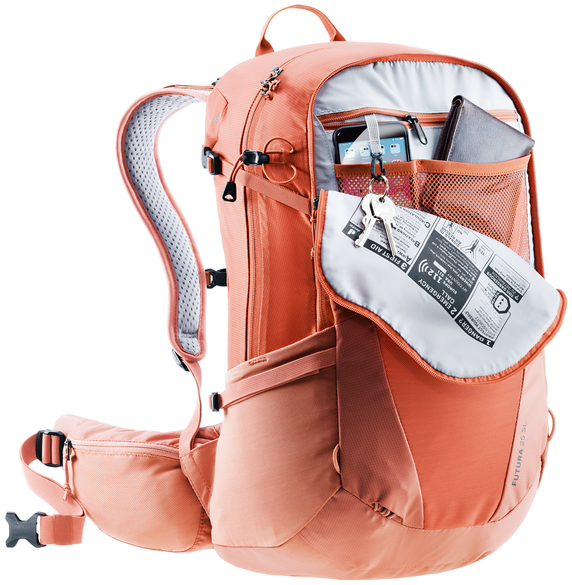 Light, comfortable, and built for the trail, the Futura 25 SL is designed for day hikes and everyday adventures. The women-specific SL fit Aircomfort back system keeps air flowing and reduces sweat on long climbs, while smart storage and an ergonomic fit make it easy to carry all your essentials. Built with recycled materials and a streamlined design, it's ready for wherever the trail — or your weekend — takes you.