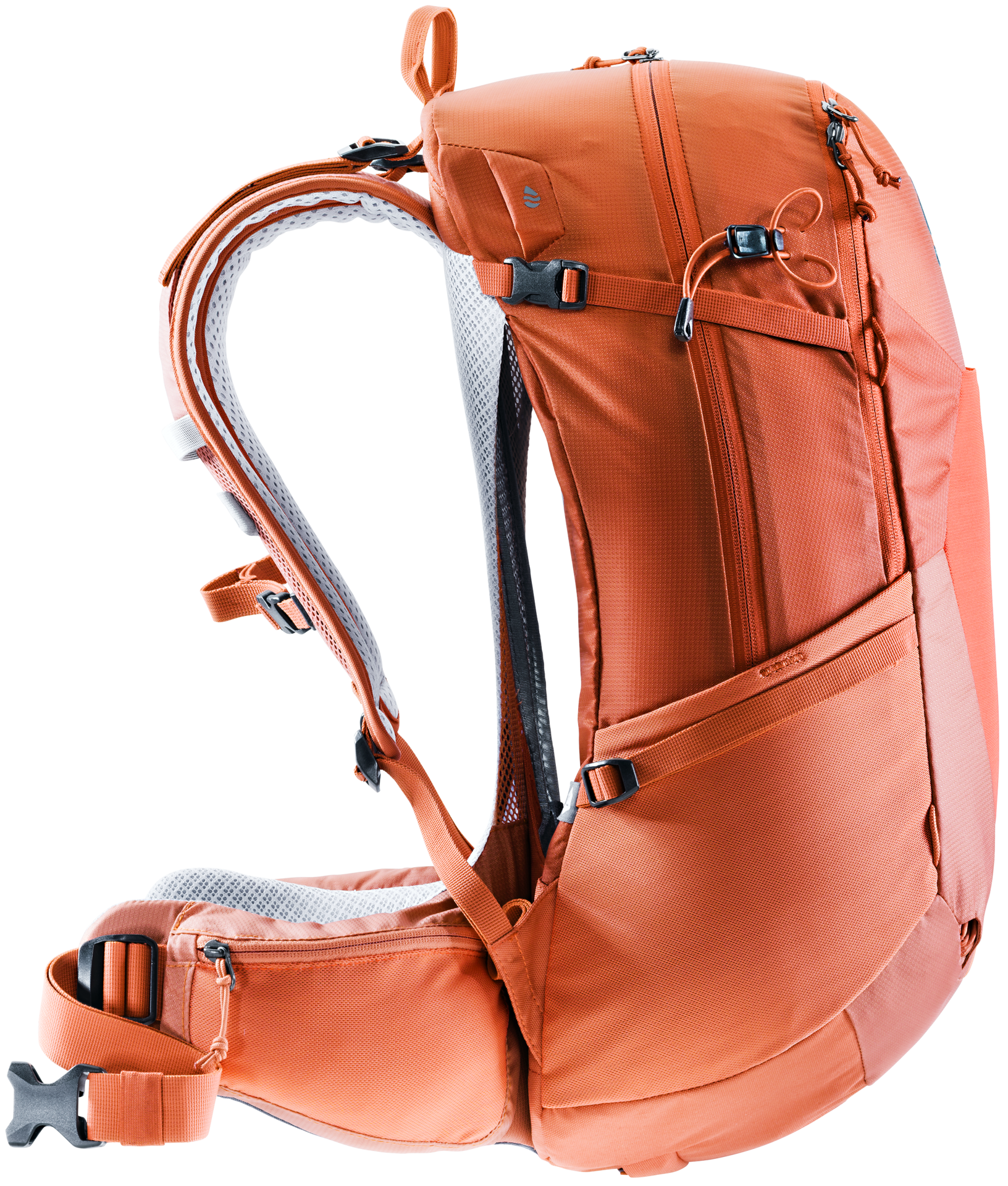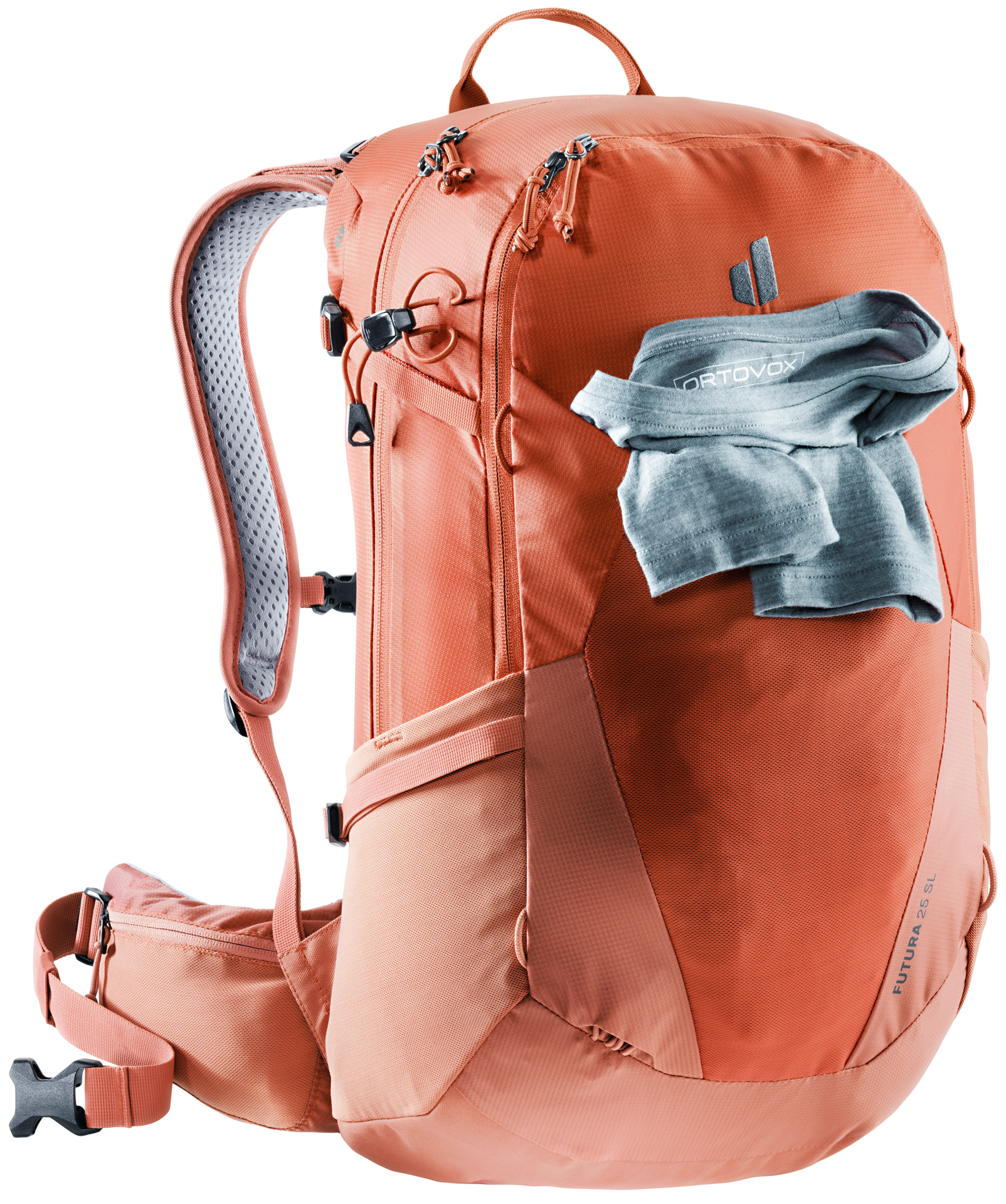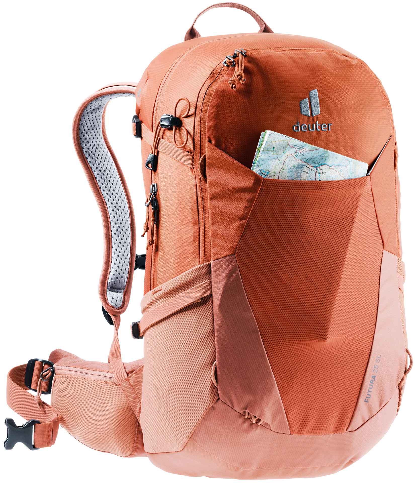 This model is also available in the SL version. The SL back length is specific for women: on average, women have shorter backs than men. The carrying system in the SL model is therefore somewhat shorter than in the deuter standard backpacks. In addition, the carrying system is specially adapted to the female anatomy. More information about our fits.