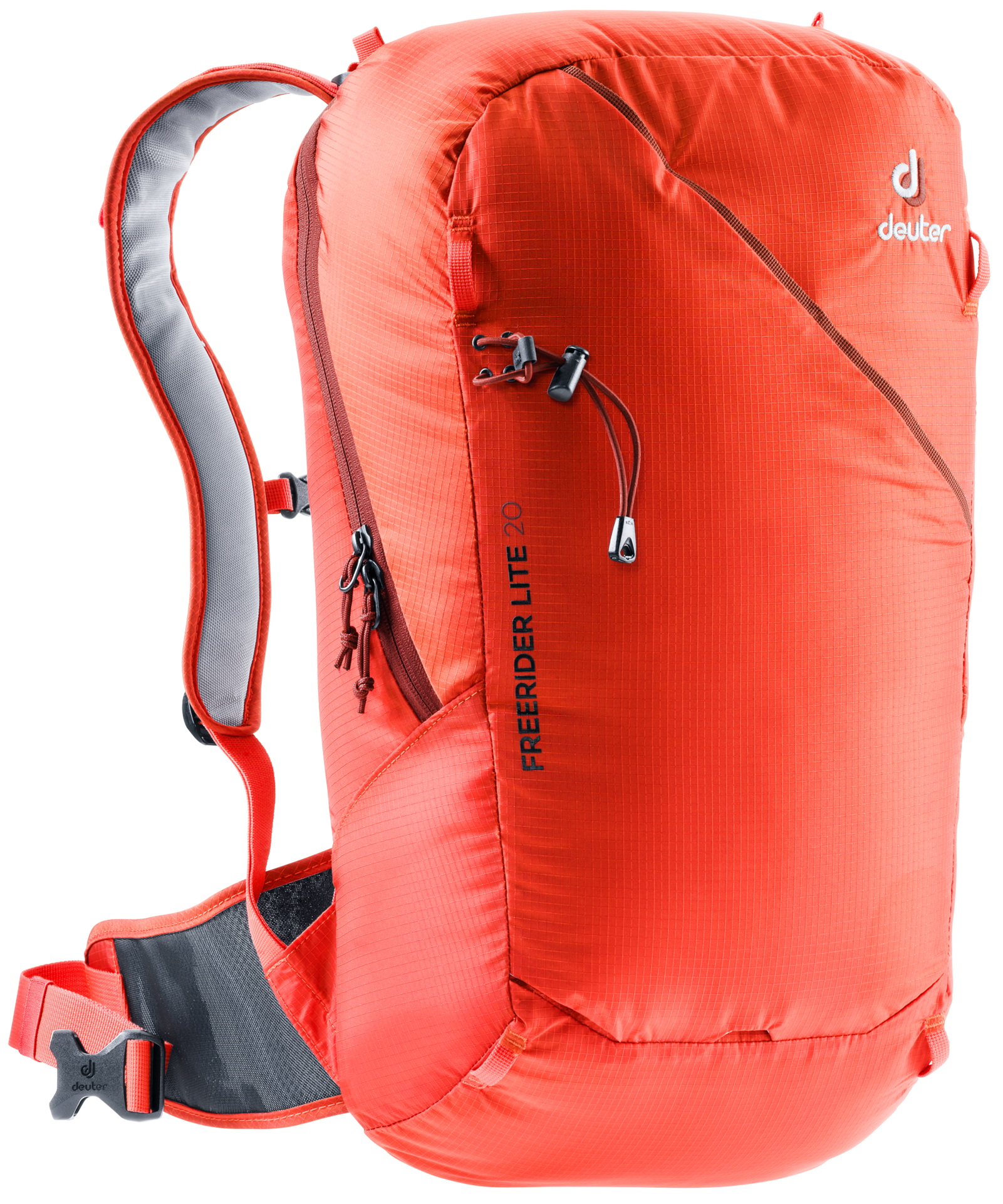 If you spend your winters in the mountains – skinning and skiing – then the ultra-lightweight Deuter Freerider Lite touring pack is just what you’re looking for. Featuring our Lite carry system and made from a new fabric that’s hard wearing, breathable and snow resistant, the Freerider Lite is extremely comfortable to carry. Sweaty, wet equipment and clothing can be stashed in the front pocket, leaving contents in the main compartment dry. We’ve also equipped it with our new modular attachment set-up. You can strap your skis, snowboard or snowshoes onto the outside of the pack using two dedicated stowable straps attached to the gear loops on the pack: skis diagonally, snowboards and snowshoes in an upright position. And with the weight of this pack pared down to a minimum, you’ll make light work of the ascent.