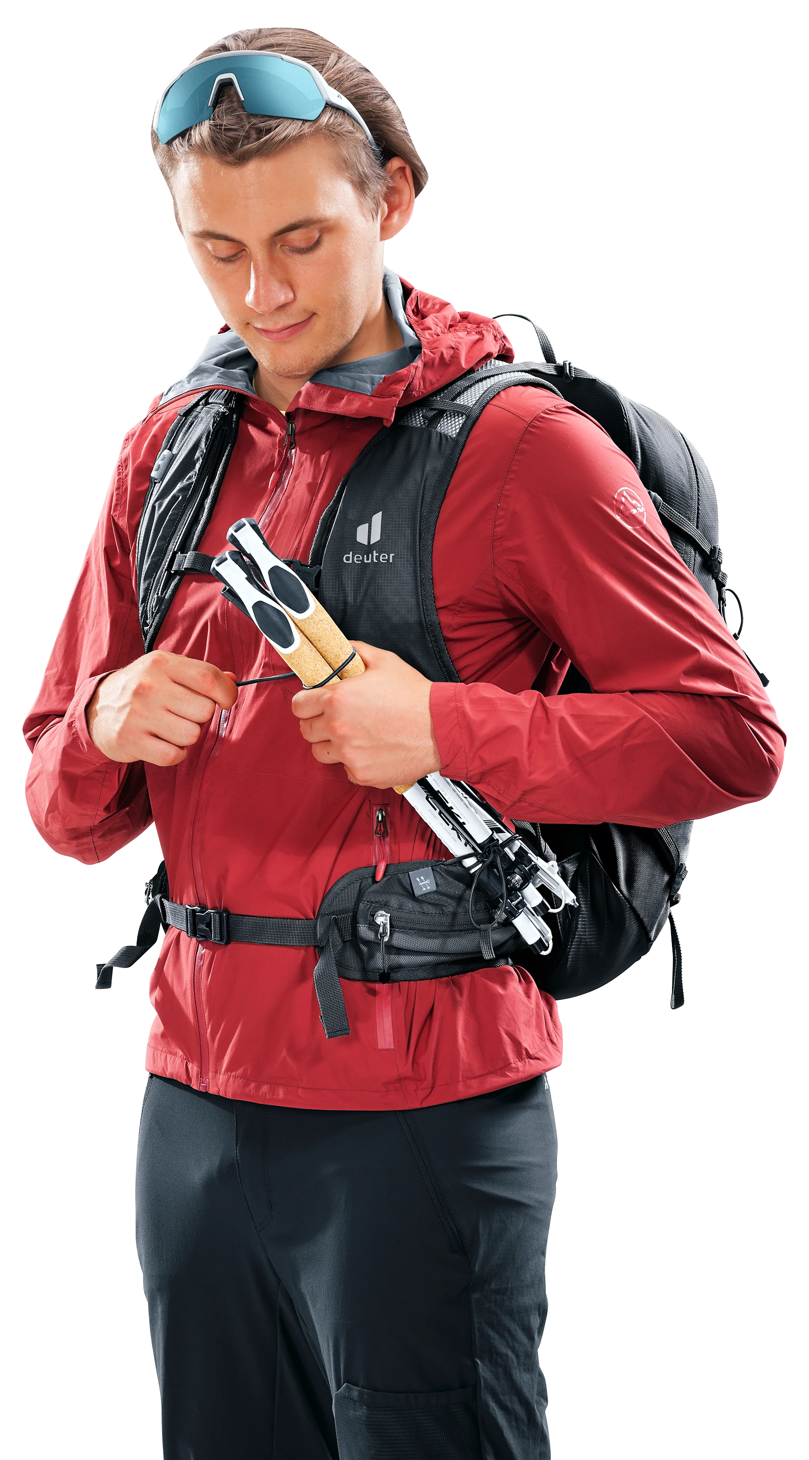 Move fast & light — as well as comfortable — with this featherweight speed hiking backpack. Its vest-style perforated shoulder straps, wrapping hip fins, 2-way adjustable sternum strap and deuter LiteAir back system combine to create good ventilation and a snug, compact fit. Handy pockets on the shoulder straps and hip fins, plus quick-release pole attachments, provide fast on-the-move access without having to take off the pack. And thanks to the Streamer II bladder with 2 liters’ capacity (included), your hydration is also taken care of.