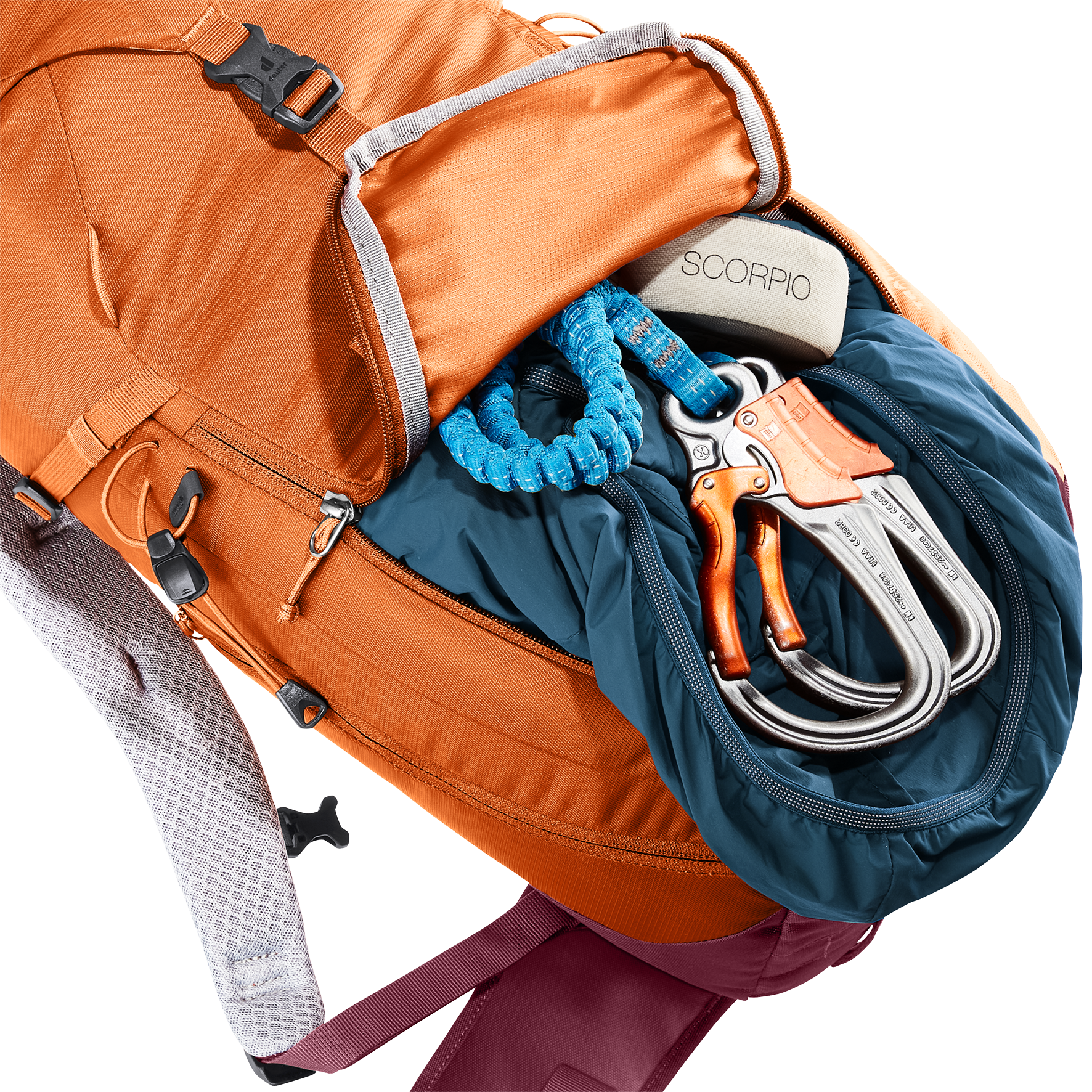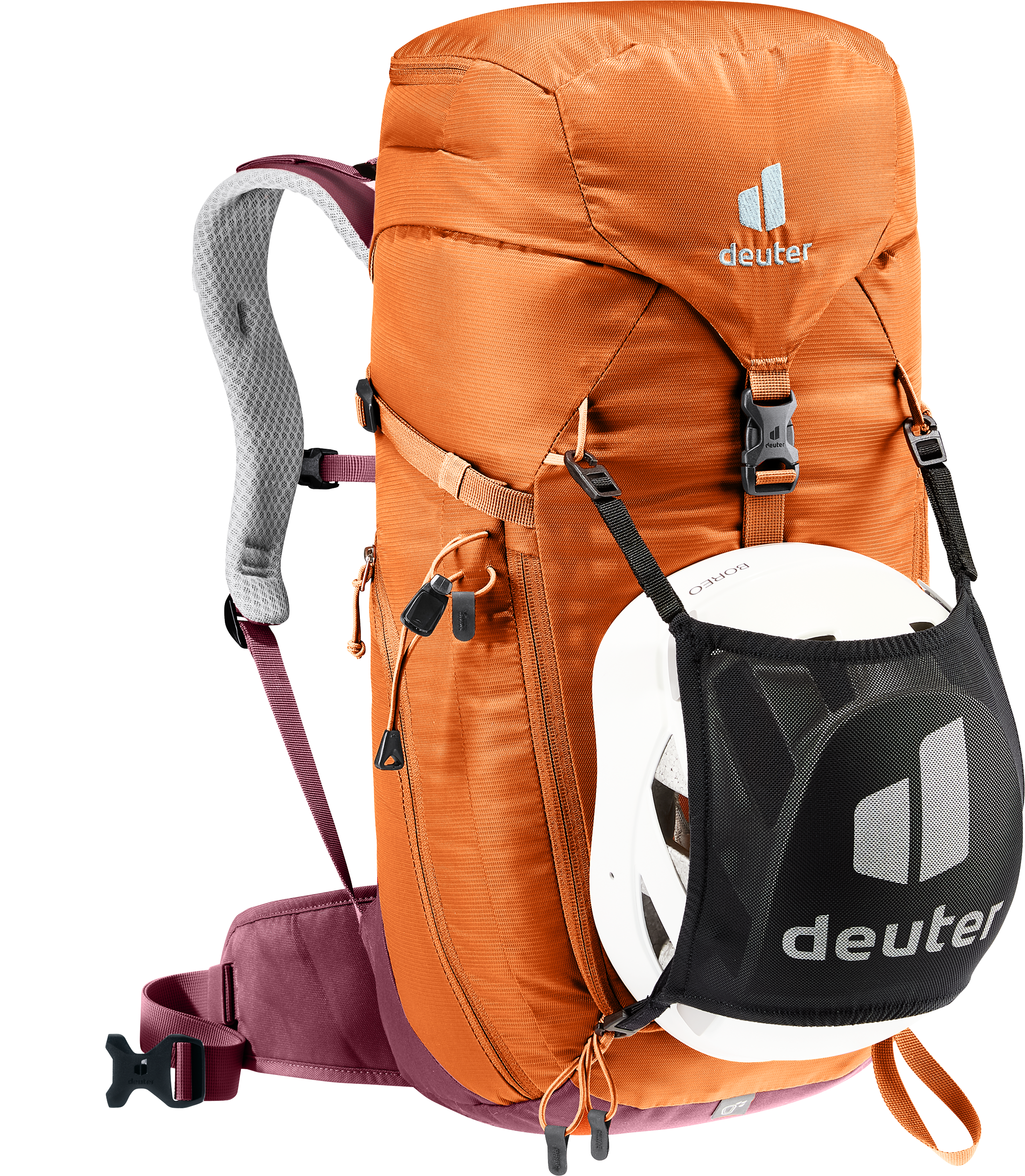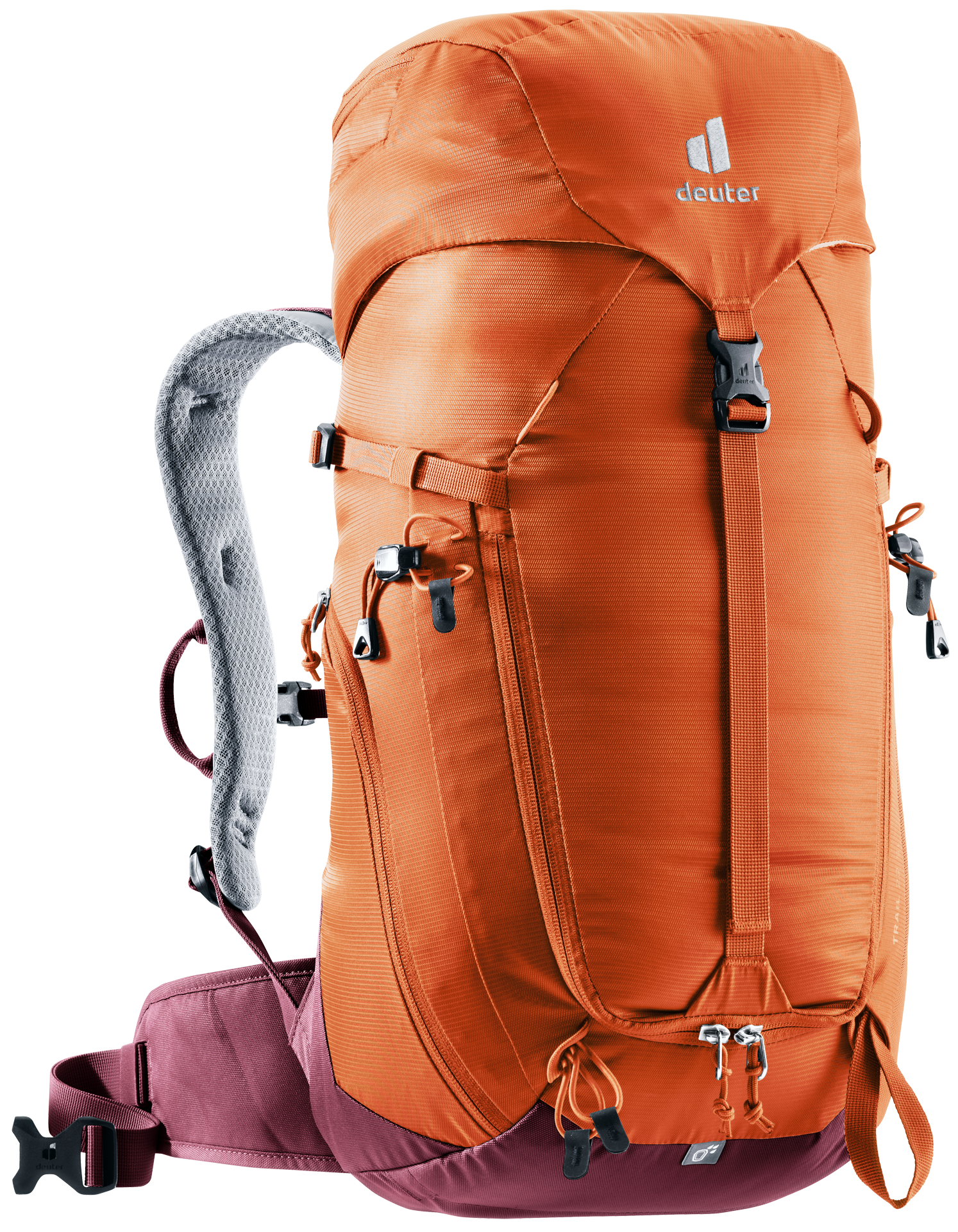 The reduced contact surface and large ventilation channels of the deuter Airstripes back system combined with ergonomic shoulder straps and hip fins ensure maximum airflow and even weight distribution – for a snug, secure fit over any terrain. A flat-format lid allows space for the head to move, even with a helmet on. Loops on the shoulder straps keep via ferrata set carabiners close at hand. And thanks to a large front zipper opening and side pockets, equipment is always easy to access.