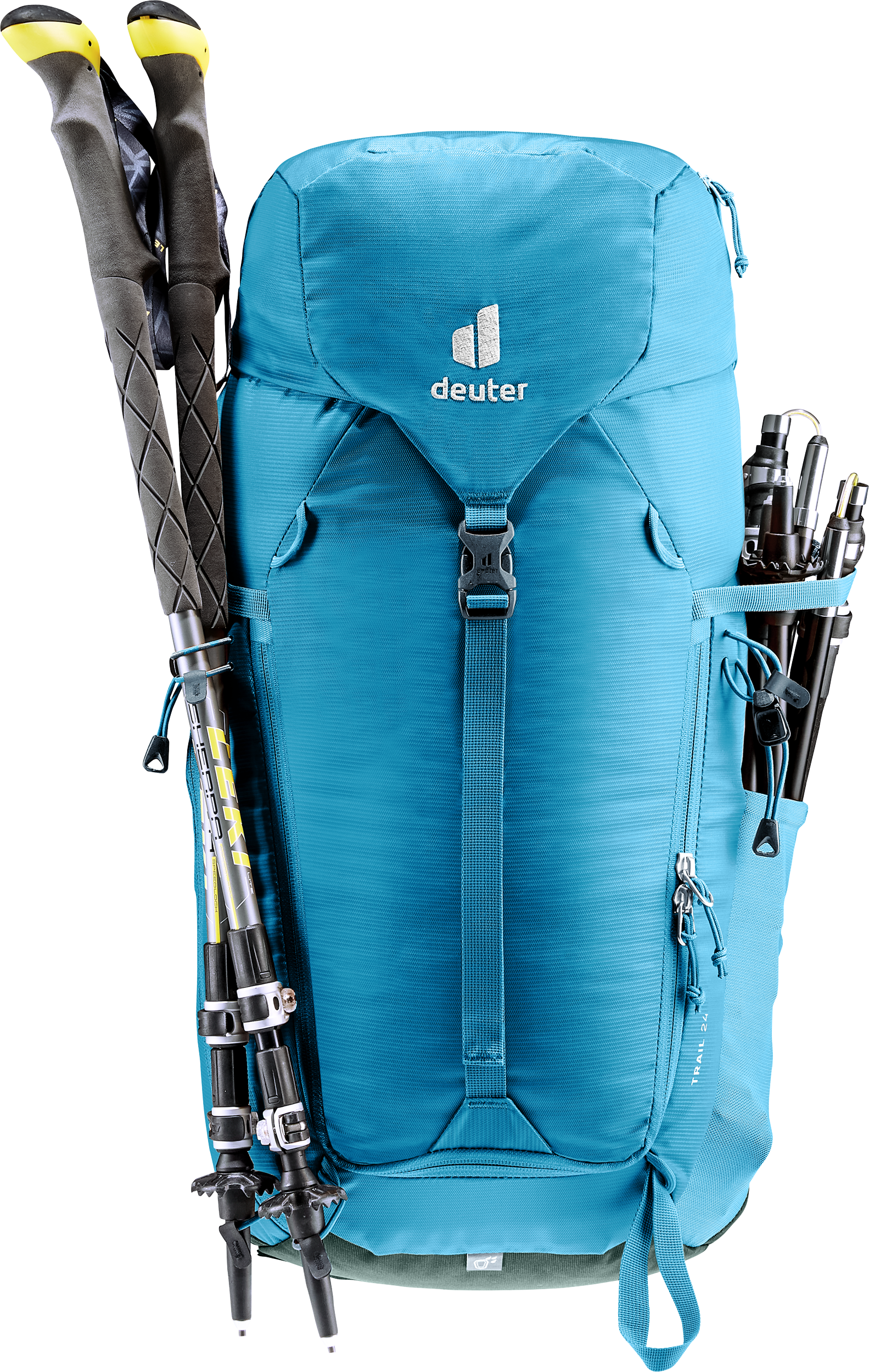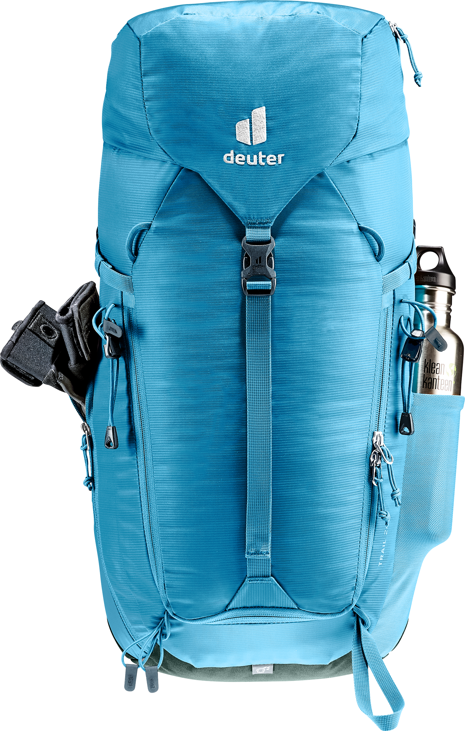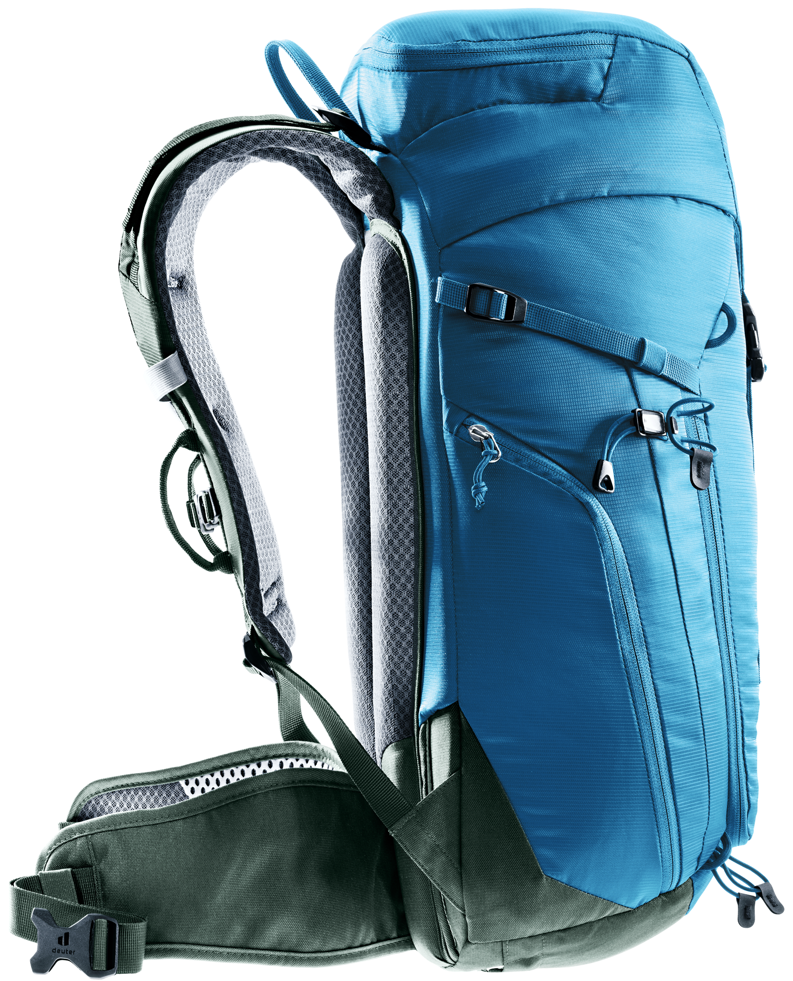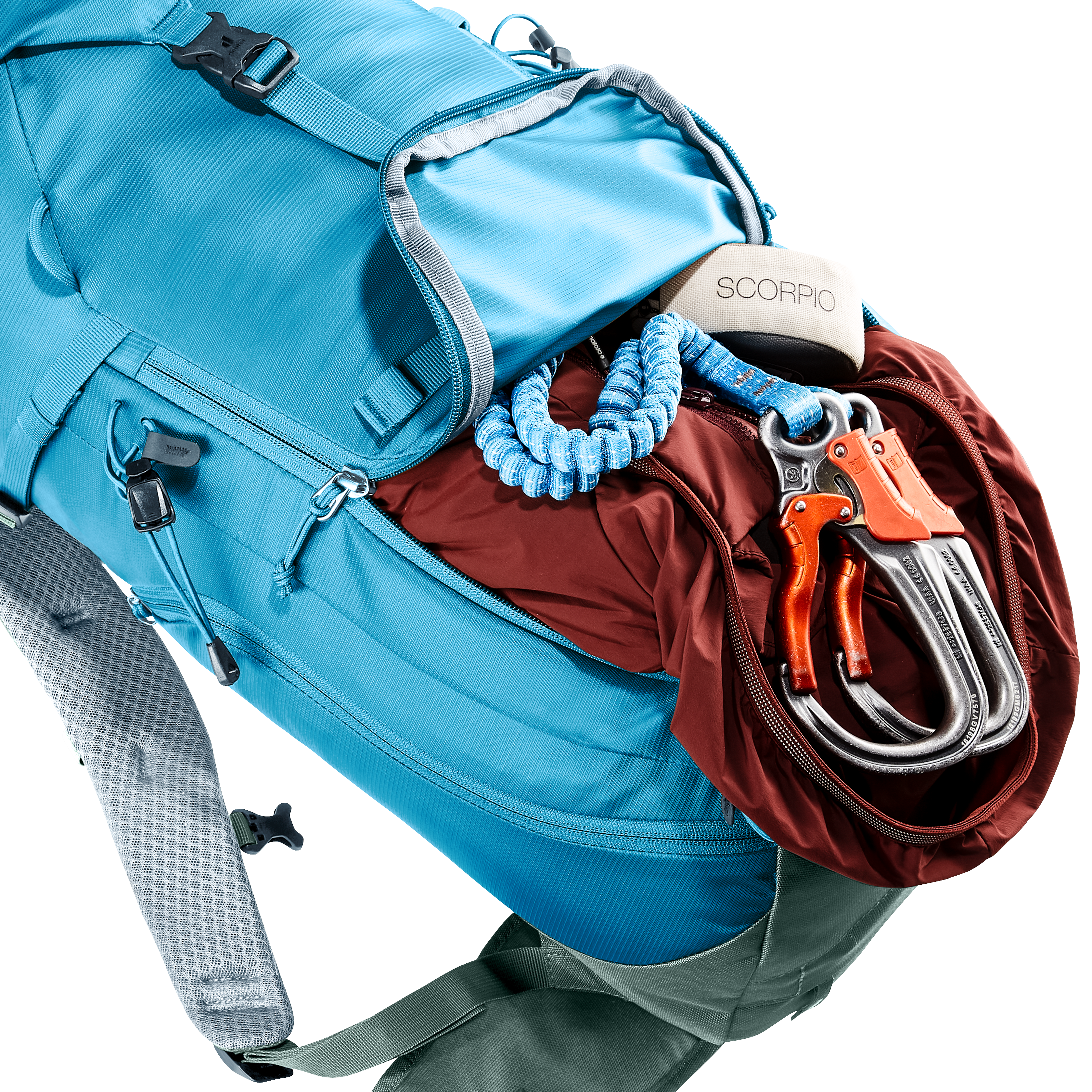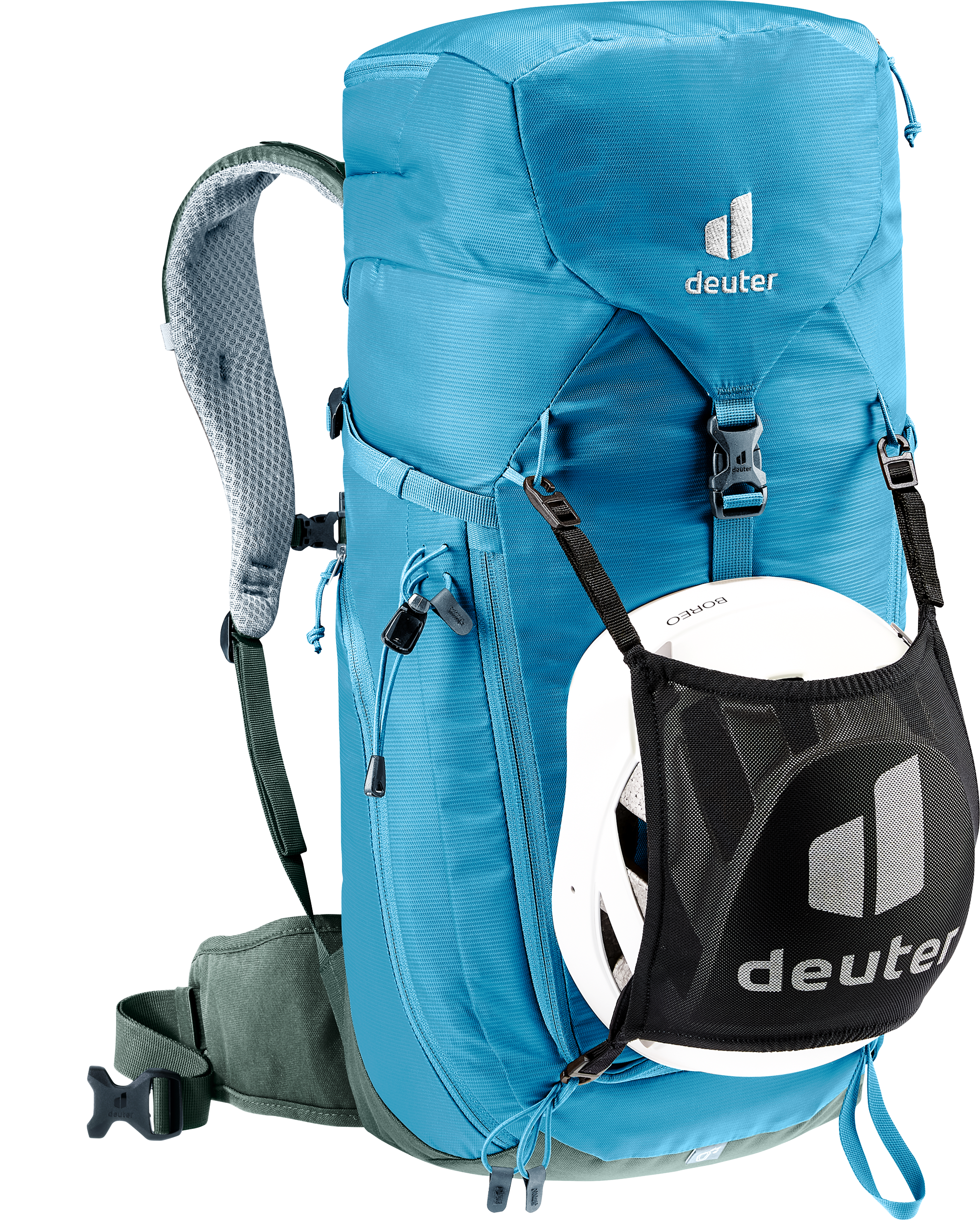 The reduced contact surface and large ventilation channels of the deuter Airstripes back system combined with ergonomic shoulder straps and hip fins ensure maximum airflow and even weight distribution – for a snug, secure fit over any terrain. A flat-format lid allows space for the head to move, even with a helmet on. Loops on the shoulder straps keep via ferrata set carabiners close at hand. And thanks to a large front zipper opening and side pockets, equipment is always easy to access.