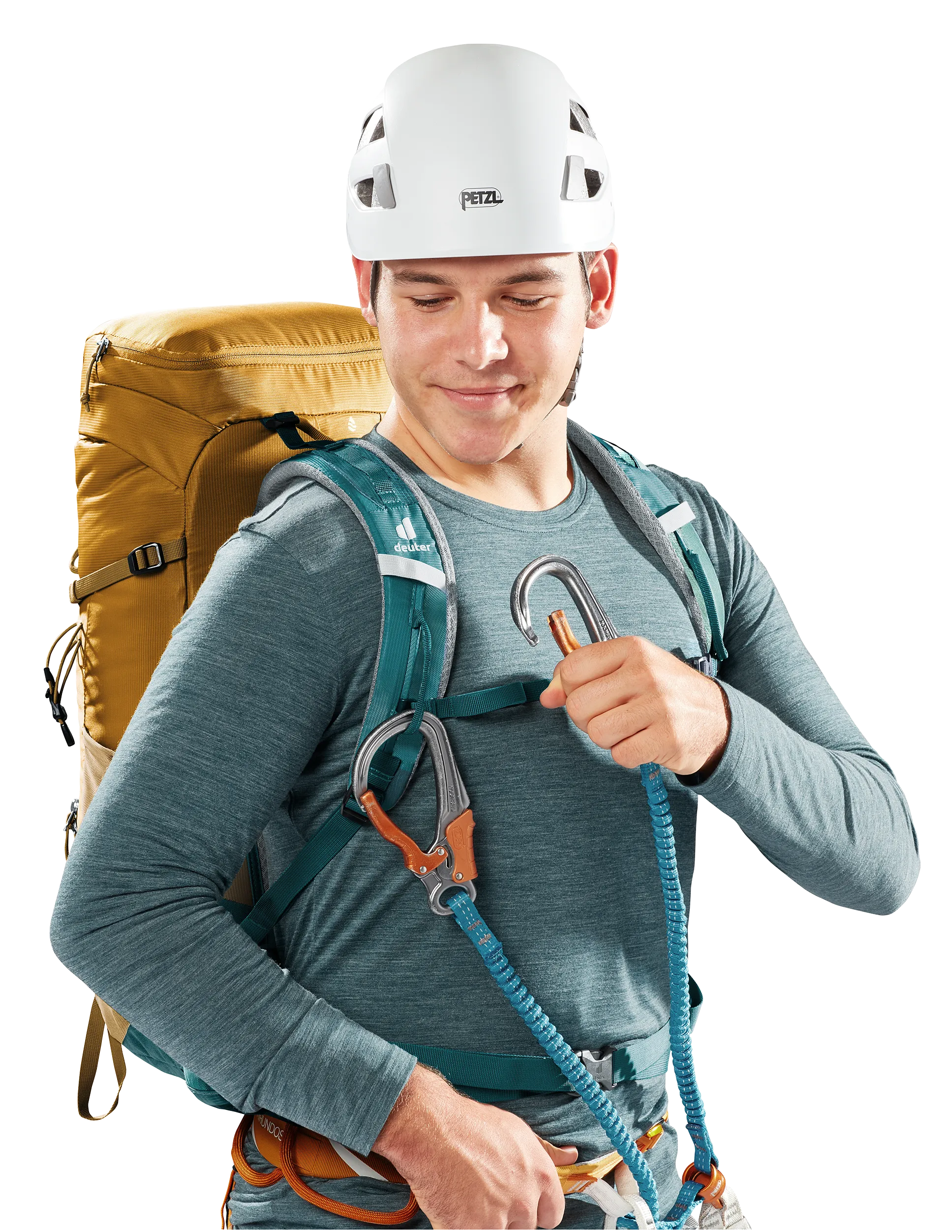 Loops on the shoulder straps keep the carabiners of the via ferrata set close at hand. That, combined with the backpack’s compact, snug fit provides enhanced safety when climbing fixed-rope routes.