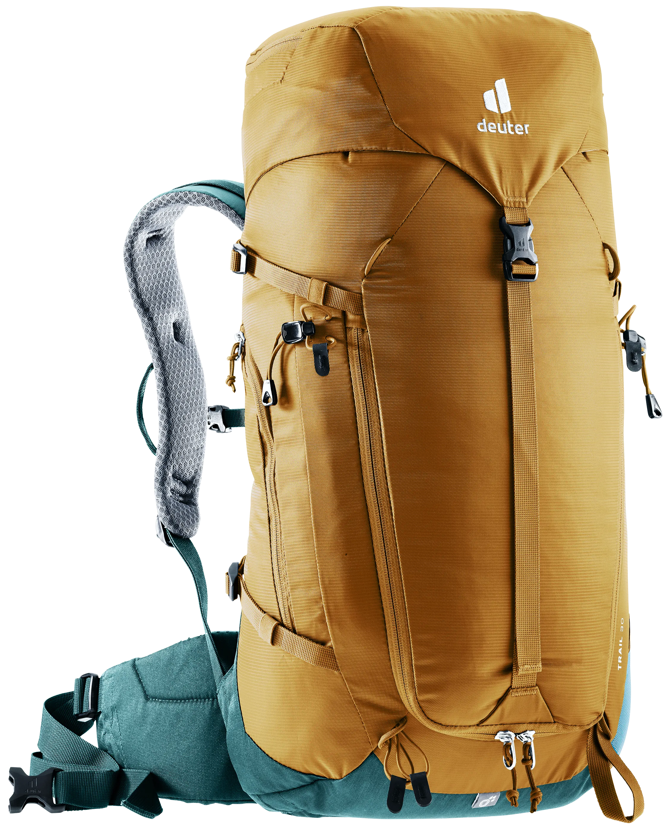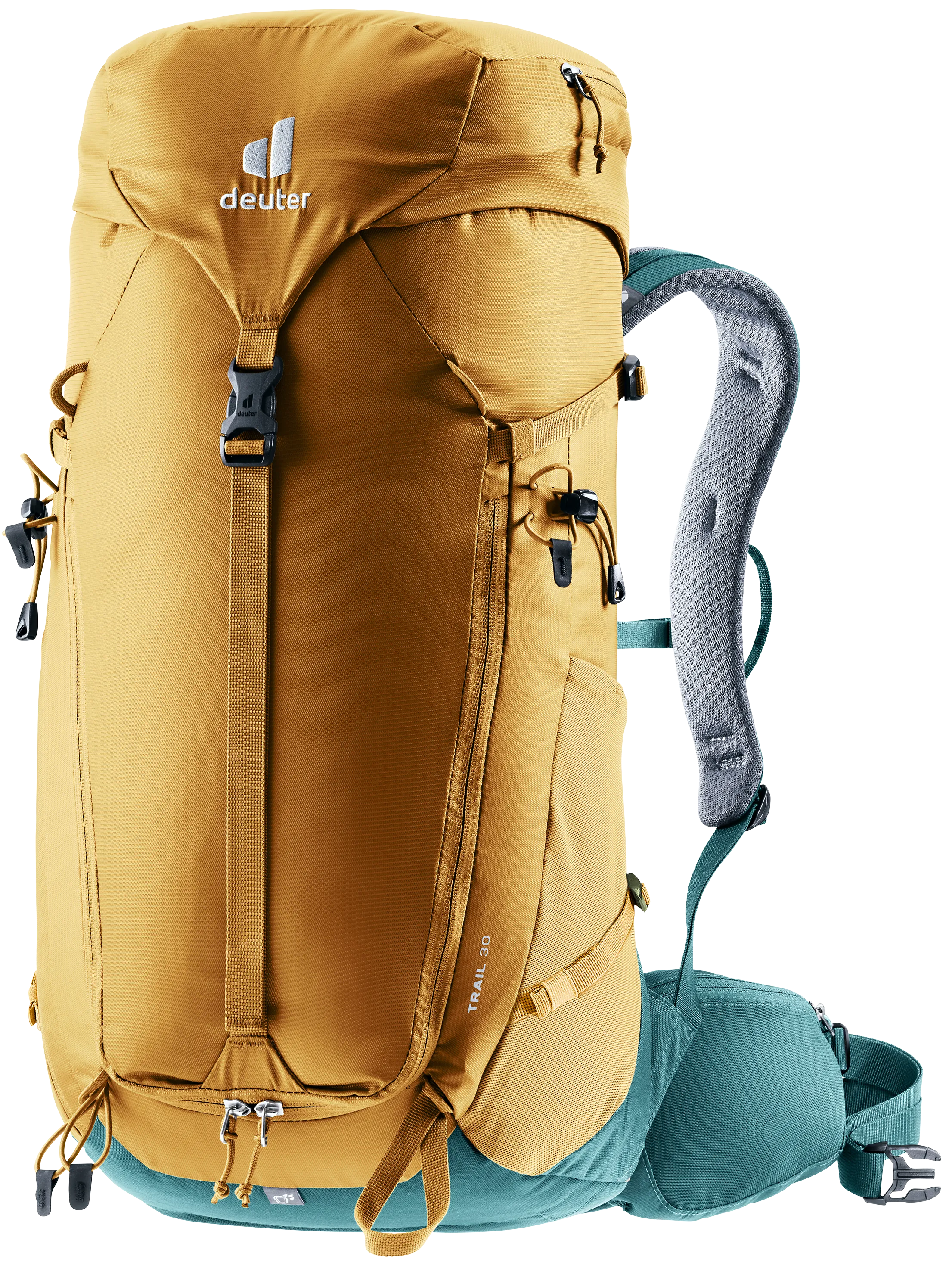 The reduced contact surface and large ventilation channels of the deuter Airstripes back system combined with perforated shoulder straps and hip fins ensure maximum airflow. The back system also distributes the pack’s weight close to the body for a snug, secure fit over any terrain.