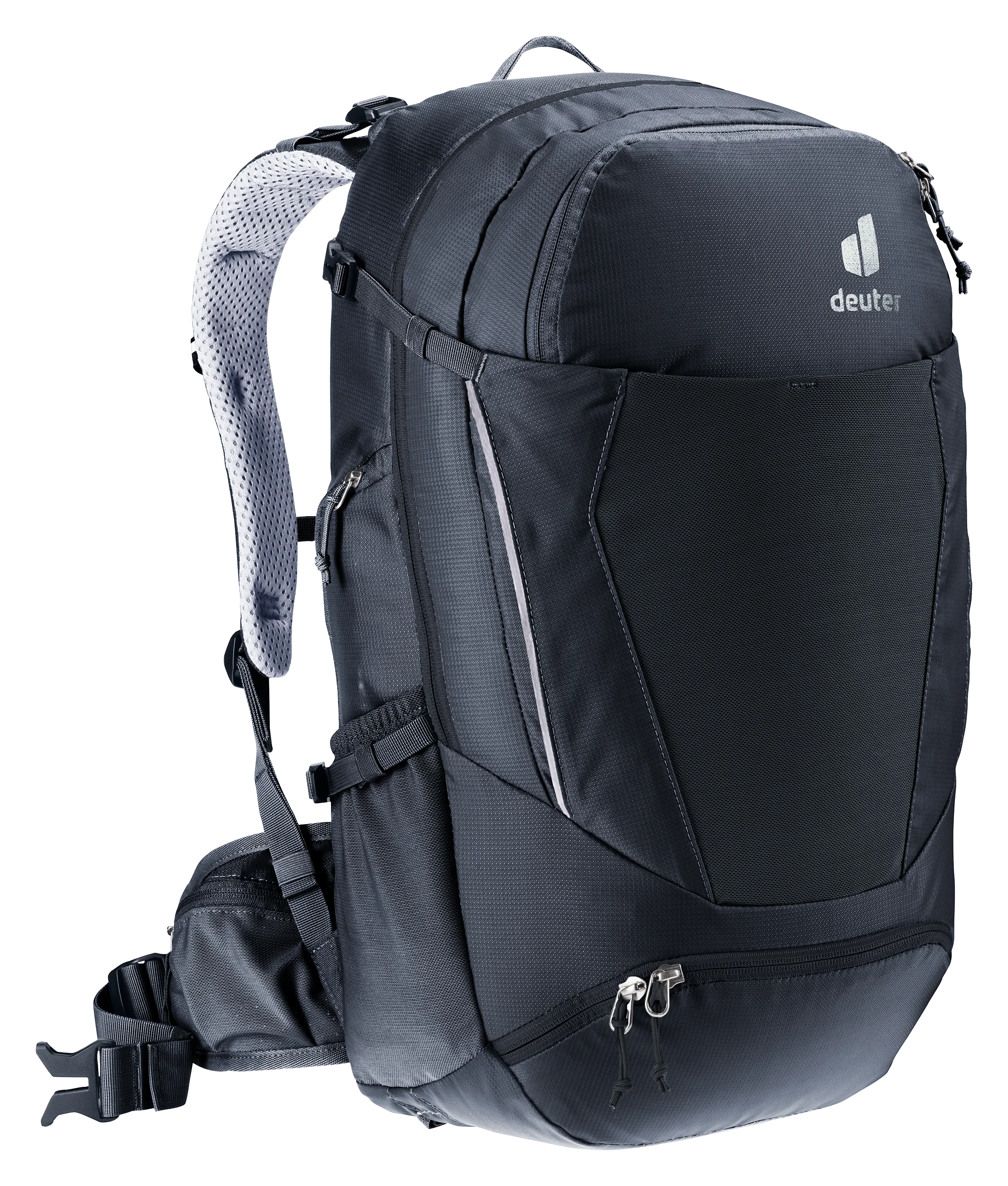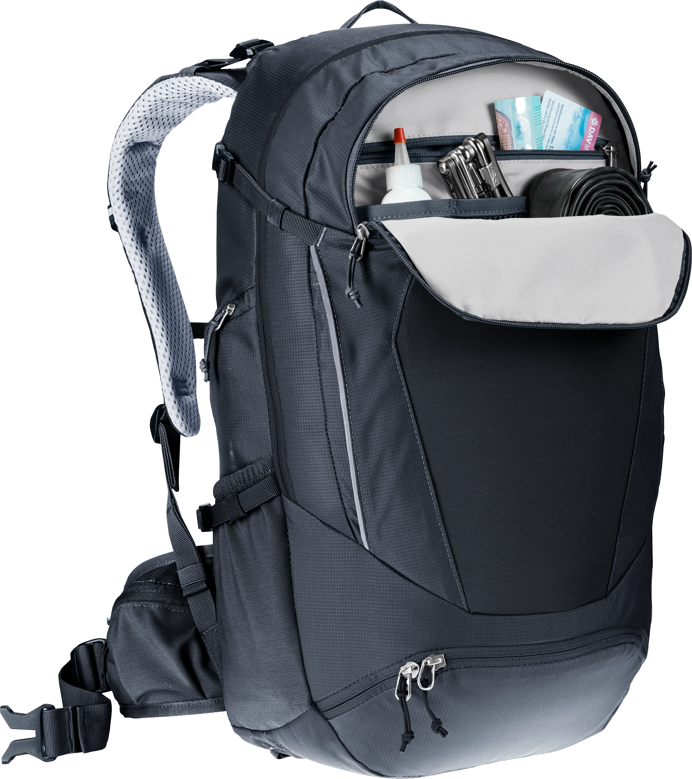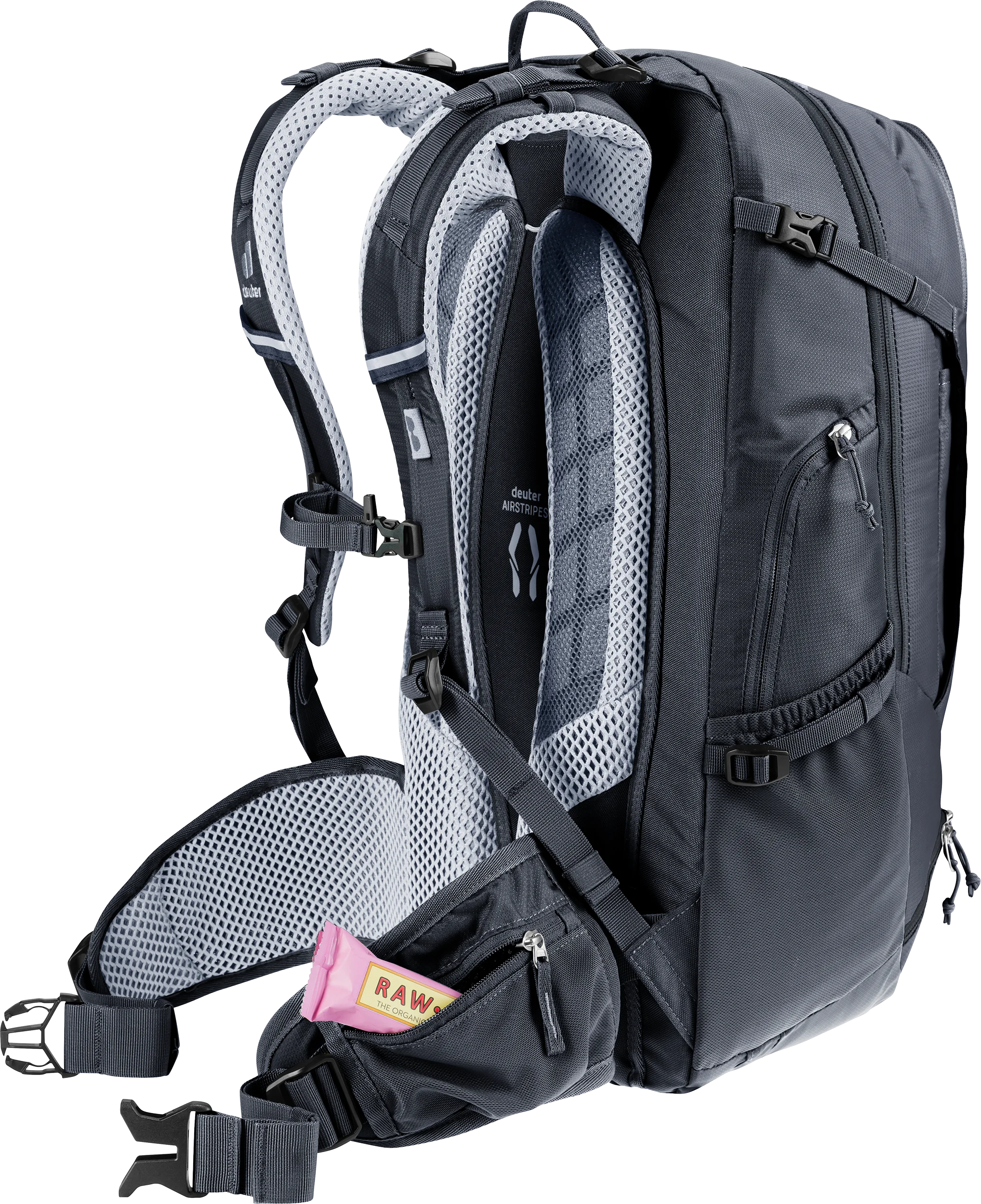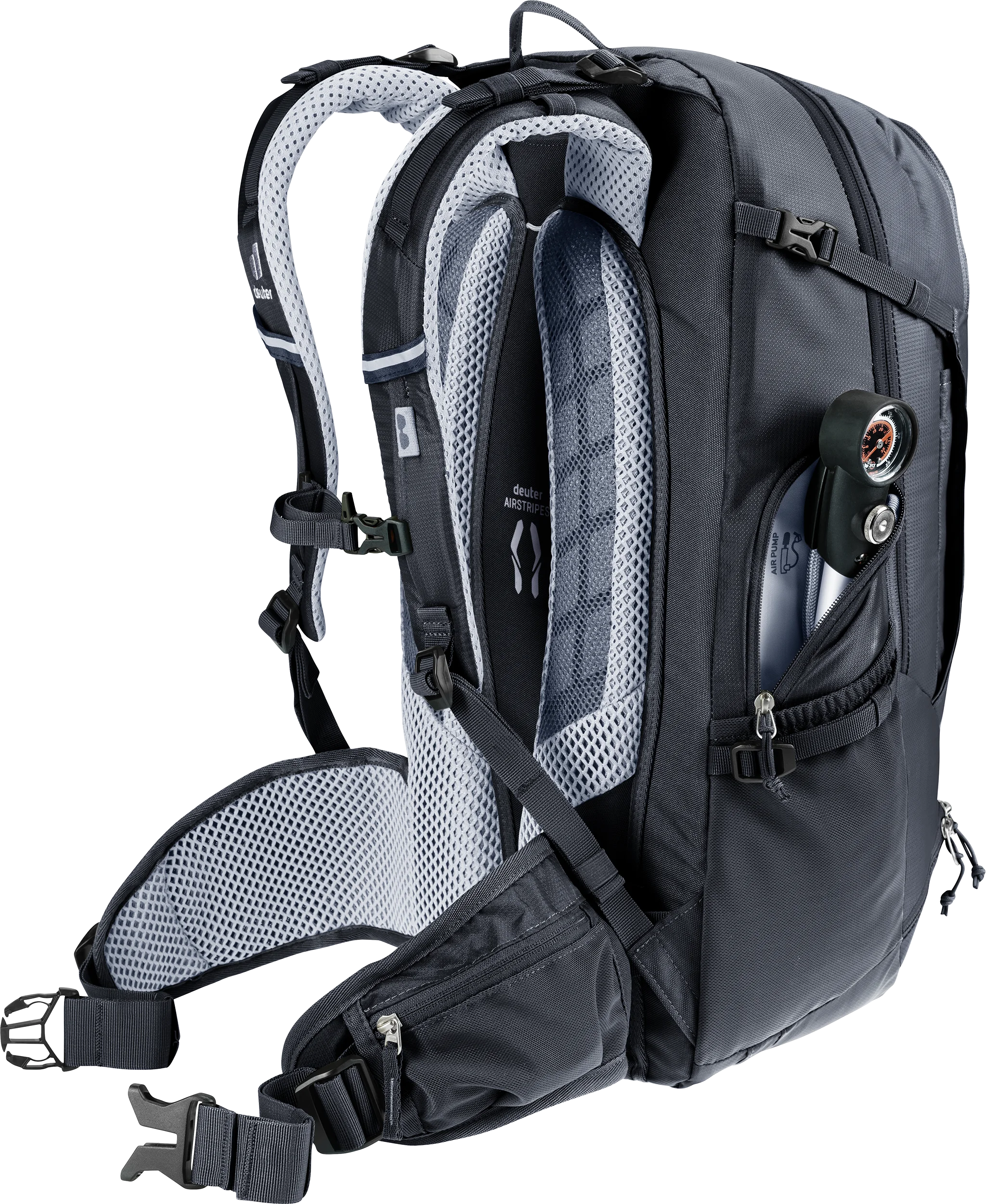 This spacious pack is ideal for challenging multi-day alpine traverses by mountain bike. The clever layout, with tool and pump compartments, for instance, plus a handy front stash pocket which can also accommodate a helmet, plus a subdivided main compartment give this pack easy handling and clever organization. The deuter Airstripes back system allows air to flow across the back for good ventilation while creating a snug, solid fit for tackling challenging trail sections without load wobble.