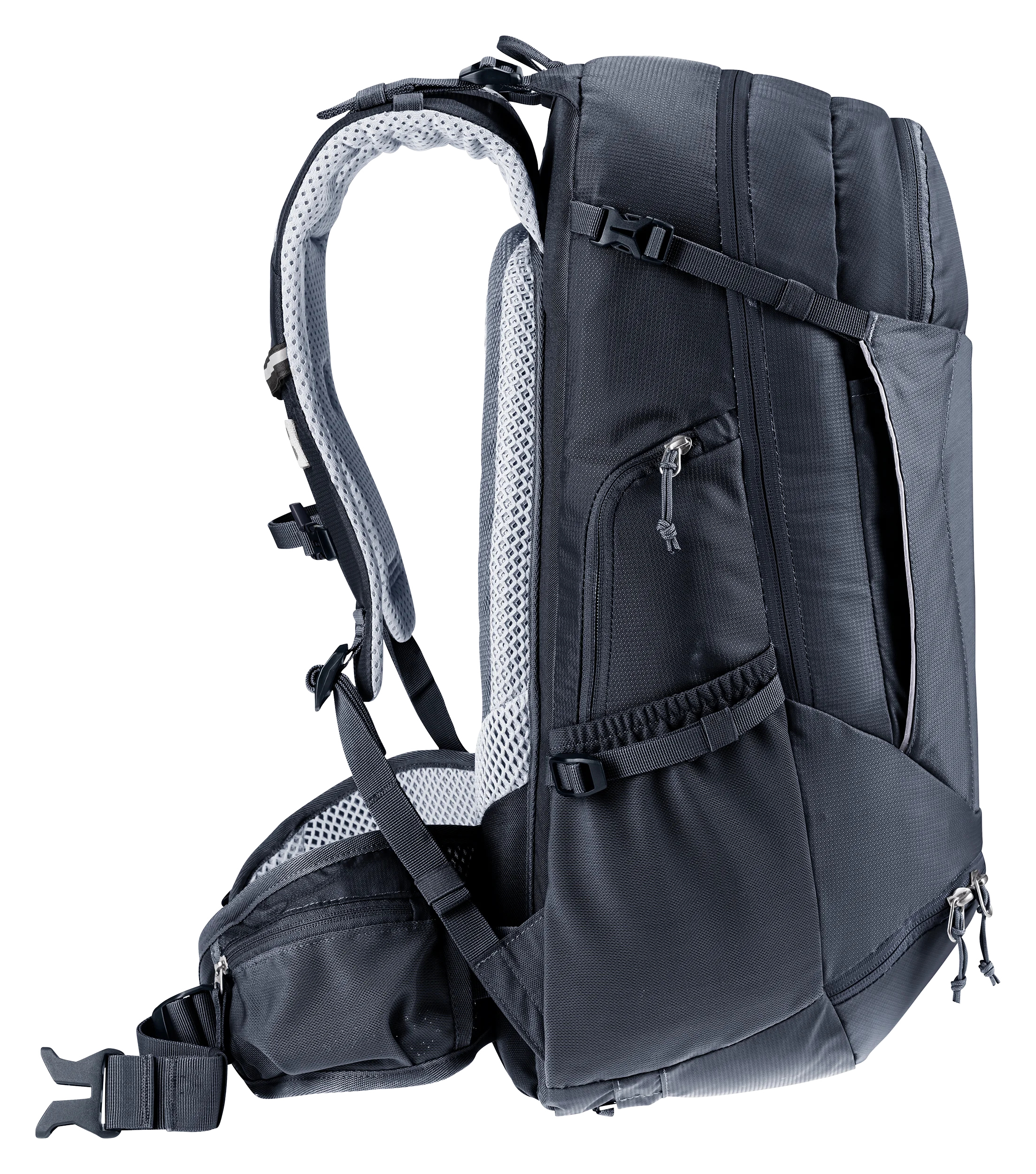 - Front pocket: mesh with buckle closure