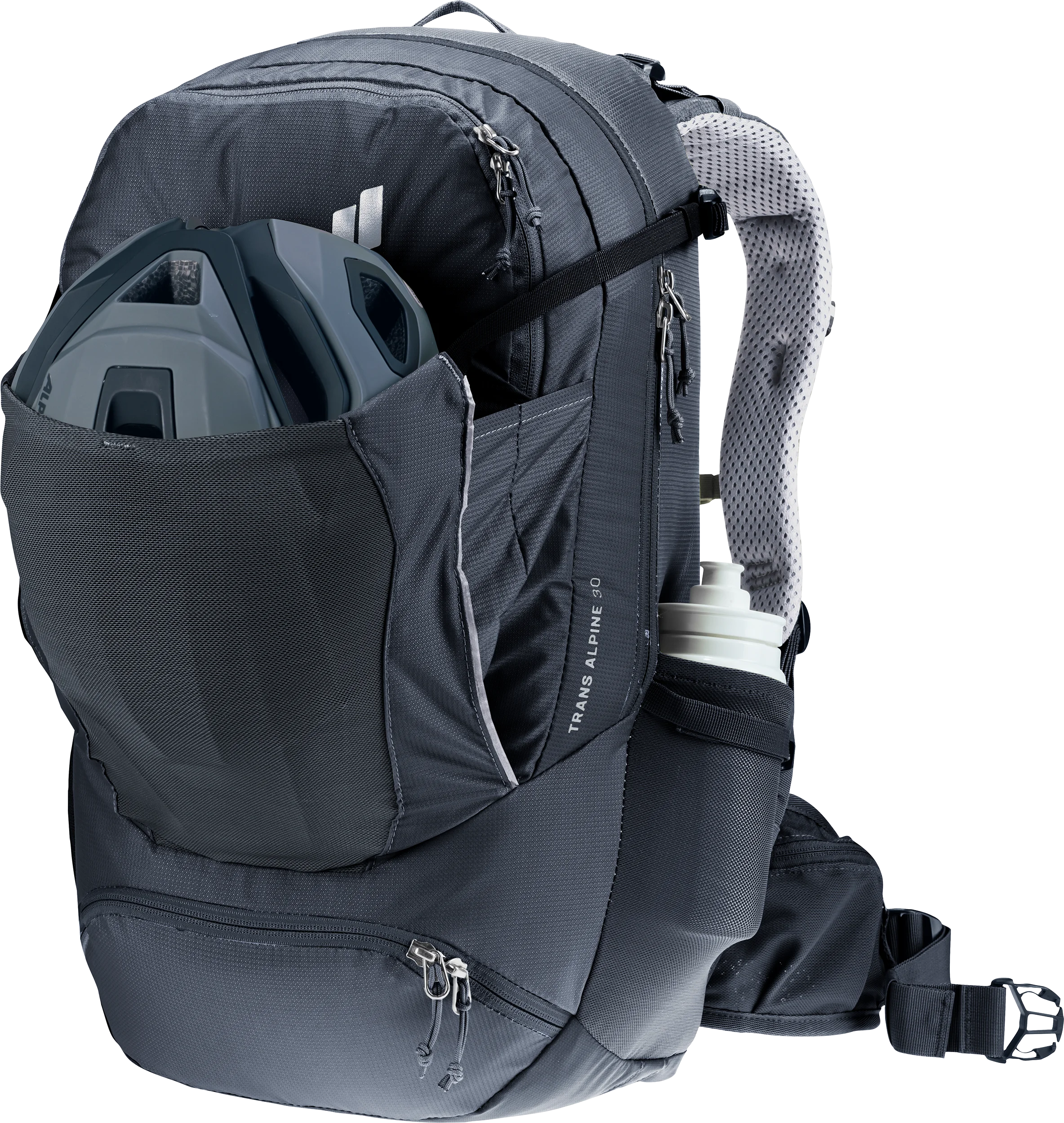 Following years of product development and countless hours of practical experience with this spacious pack, the Trans Alpine now counts as one of the most sophisticated bike backpacks on the market and the number 1 choice for alpine traverses by mountain bike. The clever layout, with tool and pump compartments, for instance, plus a handy front stash pocket which can also accommodate a helmet, and a subdivided main compartment give this pack the kind of easy handling and clever organiyation you need on multi-day routes.