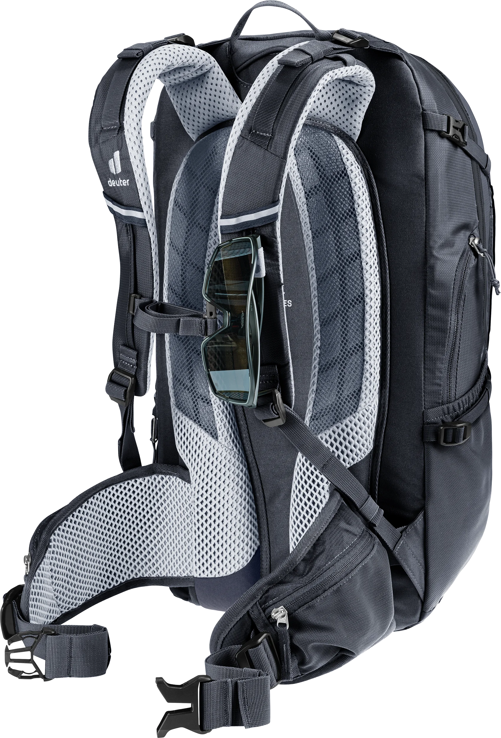 The breathable Airstripes back system ensures good airflow across the back and a snug fit for technical trails. The sternum strap, which features a new one-hand buckle, and mesh hip fins hold the pack in perfect position – no matter how rough the ride.