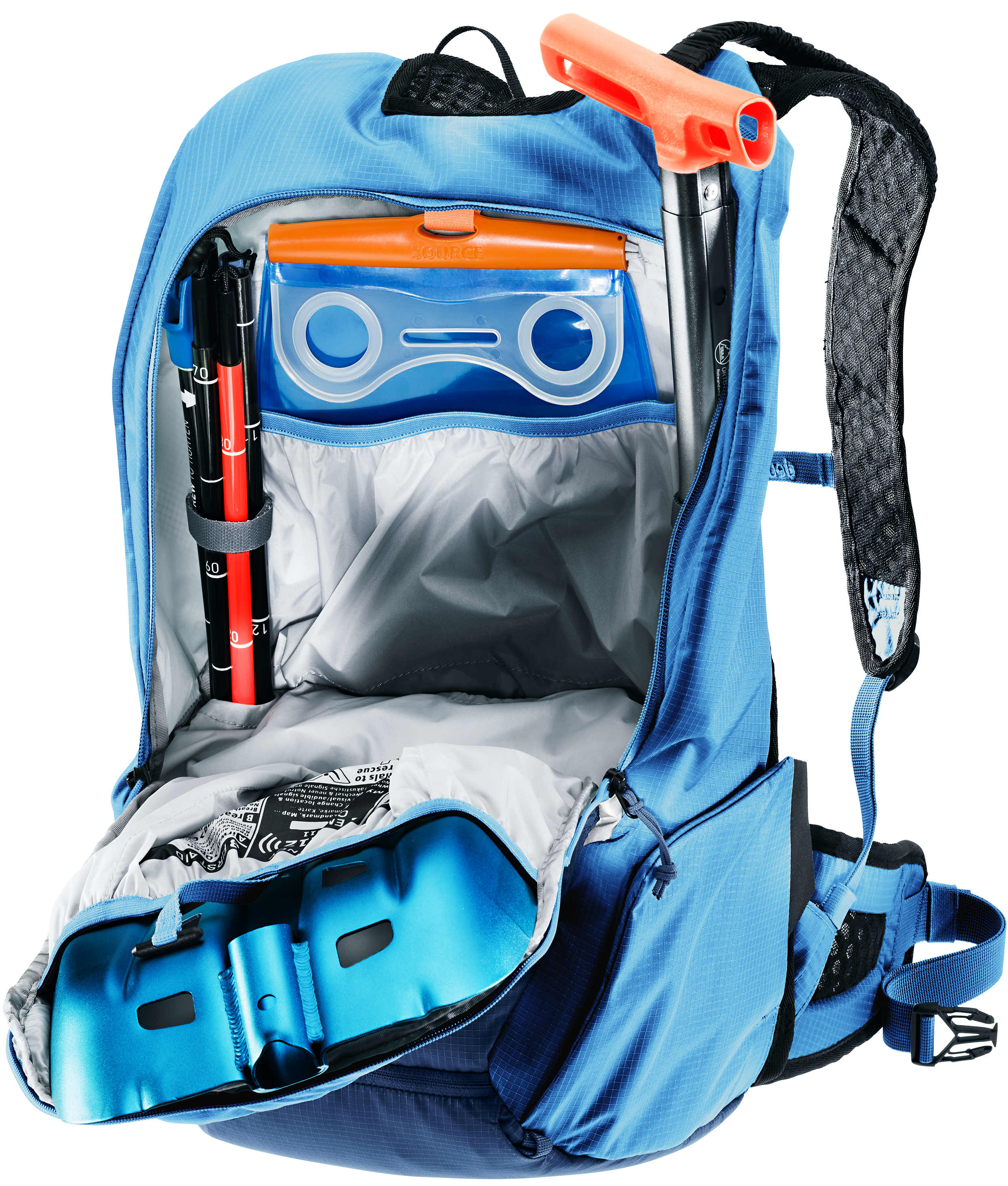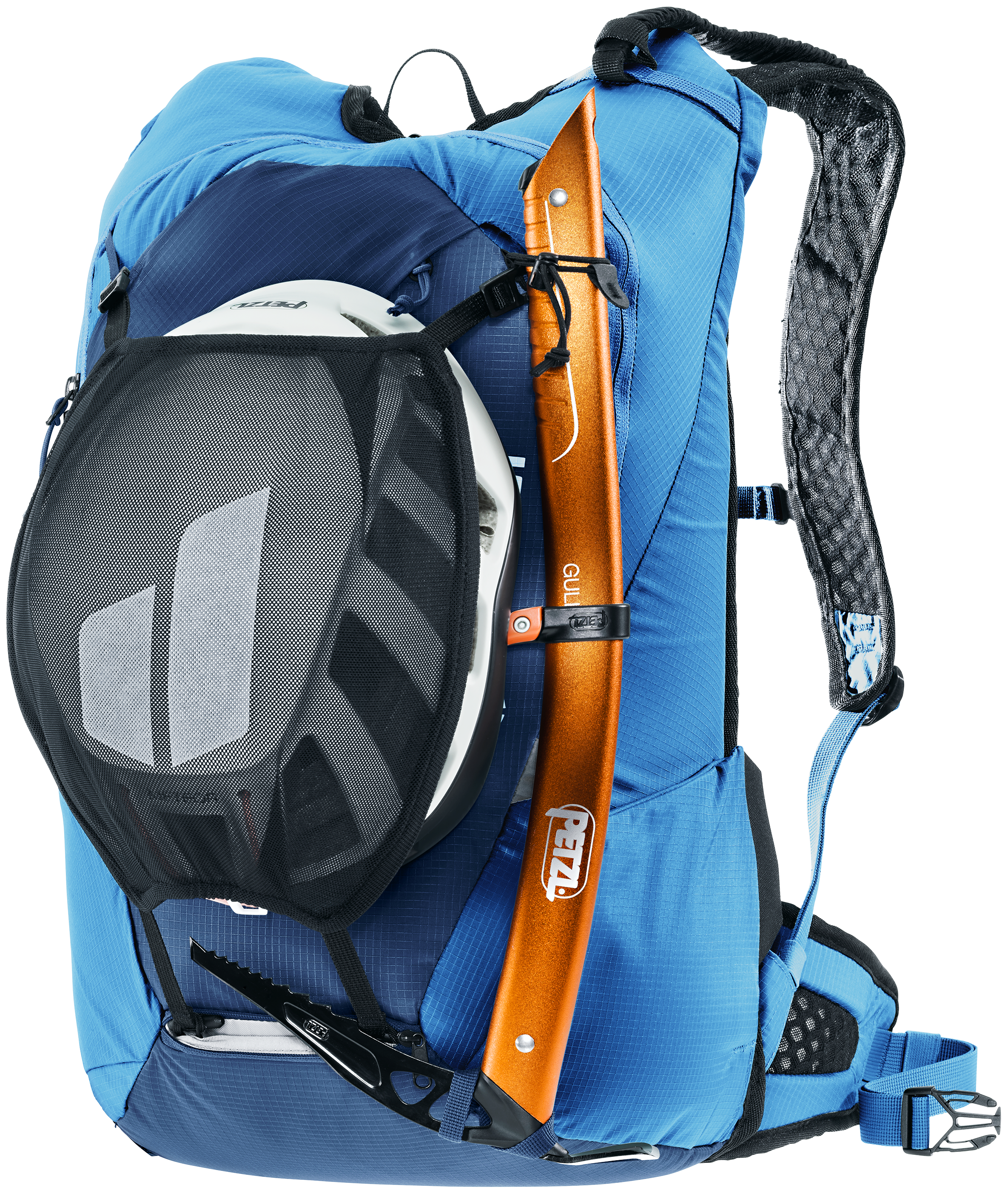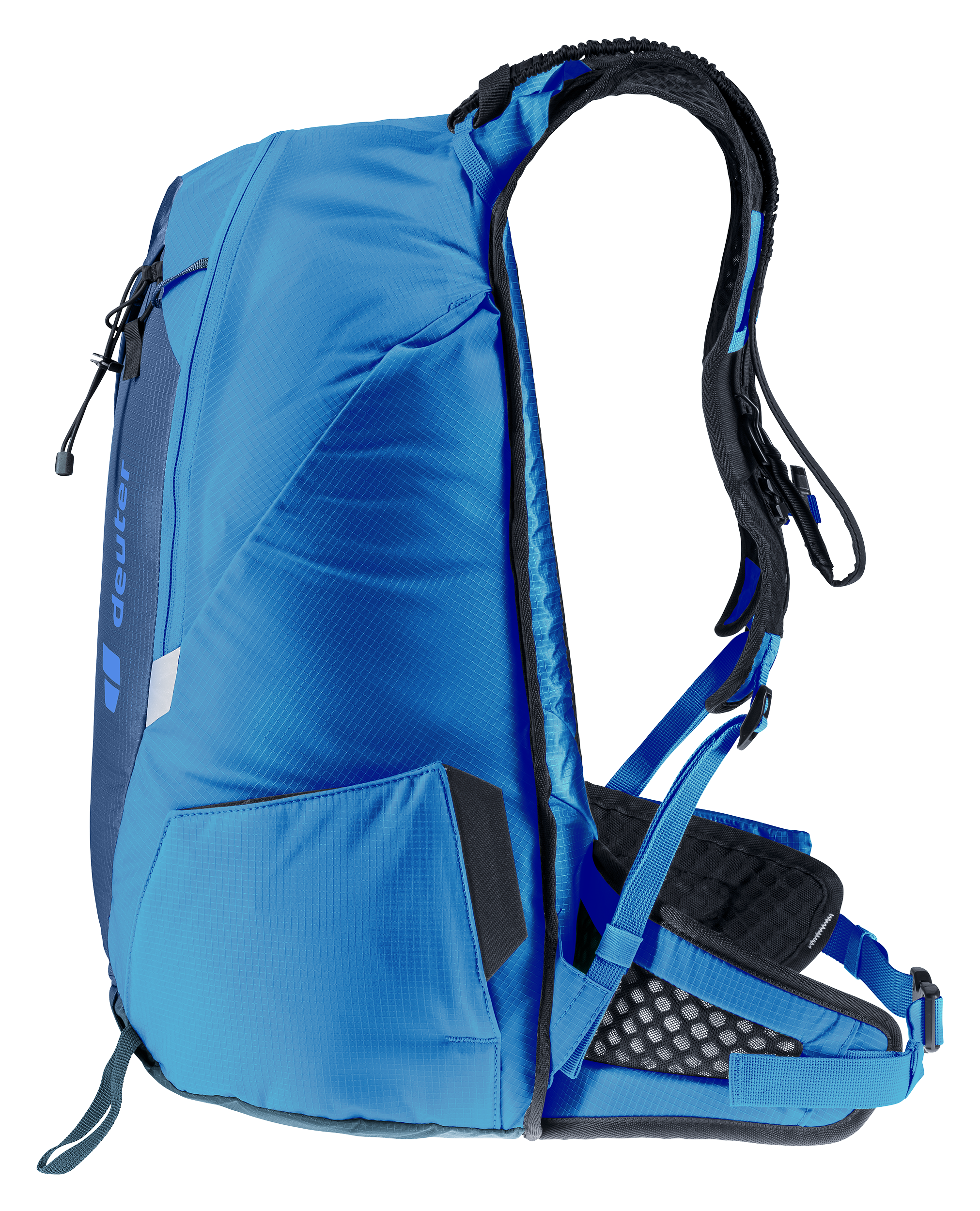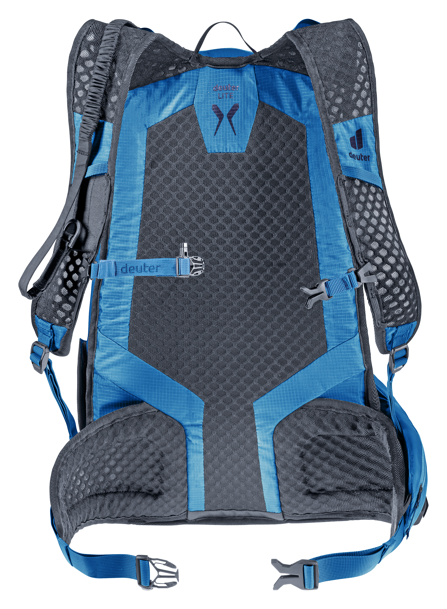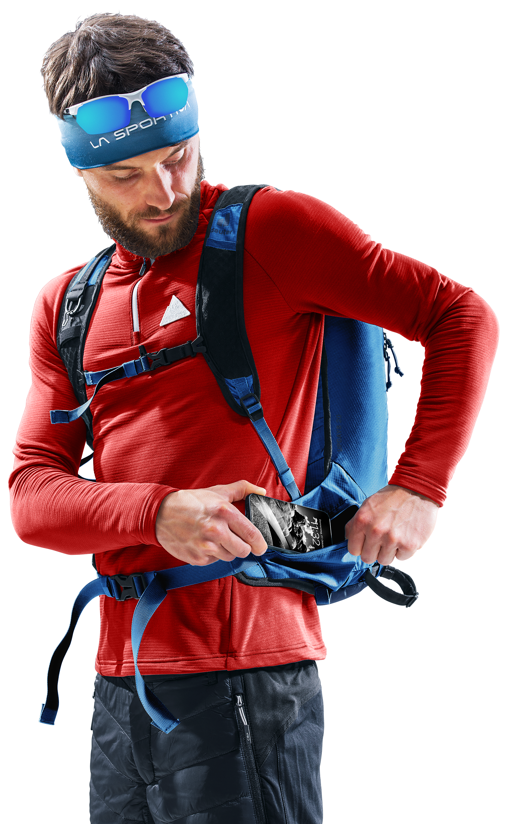 Just 710 g. Ultra-lightweight with deuter Lite comfort for speed ski touring: good ventilation, ergonomic hip fins and shoulder straps with a detachable sternum strap and foam back pad (removable) combine to create a snug fit with zero load wobble. An adjustable quick-fix diagonal ski attachment system with a sliding loop that fits round the ski ends and a bungee cord that wraps round the tips and secures to a hook on the shoulder strap gives the Updays quick and easy handling. An easy-access bottom compartment also makes it quick to get at skins, ski crampons or climbing crampons, without having to take the pack off. A climate neutral product.